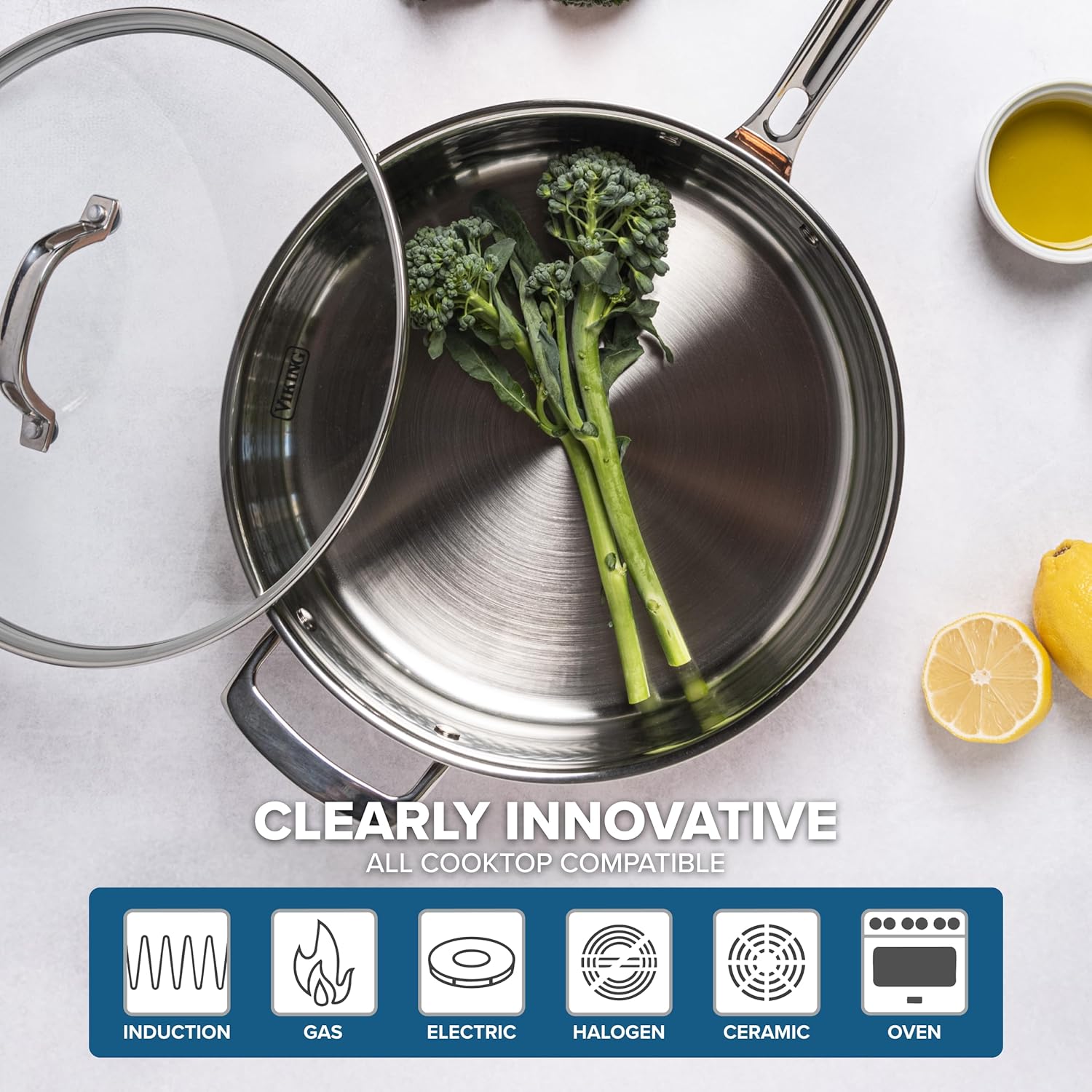 - 10 PIECE COOKWARE SET: Elevate your home kitchen experience with our Viking 10 Piece 3-Ply Hammered Copper Cookware Set! Ideal for both novice chefs and seasoned chefs, this pot and pan set includes 8 inch and 10 inch frying pans, 5.25 qt saute pan with lid, 2.25 qt and 3 qt sauce pans with lids, and a 8 qt stock pot with lid to provide everything you need to create a culinary masterpiece