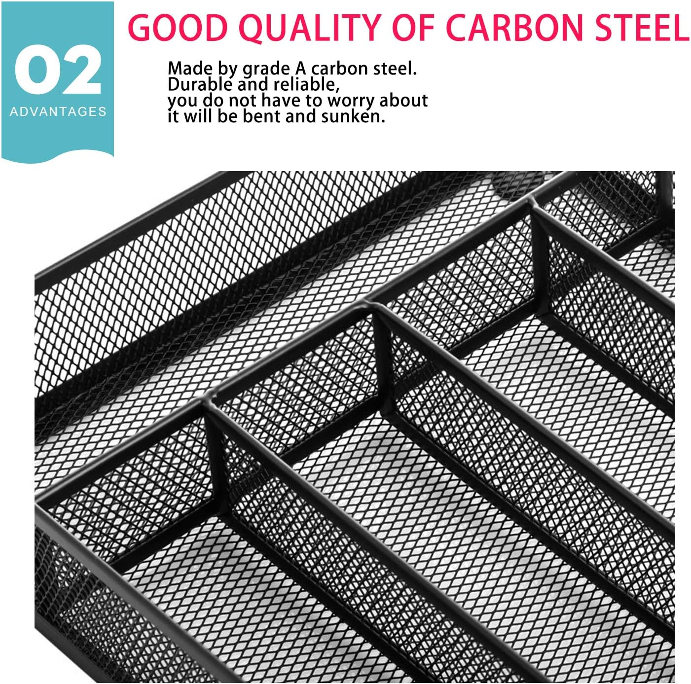 JANE EYRE Utensil Drawer Organizer, Cutlery Tray Silverware Flatware Storage Divider for Kitchen, Mesh Wire with Non-slip Foam Feet, 5 Component, Black