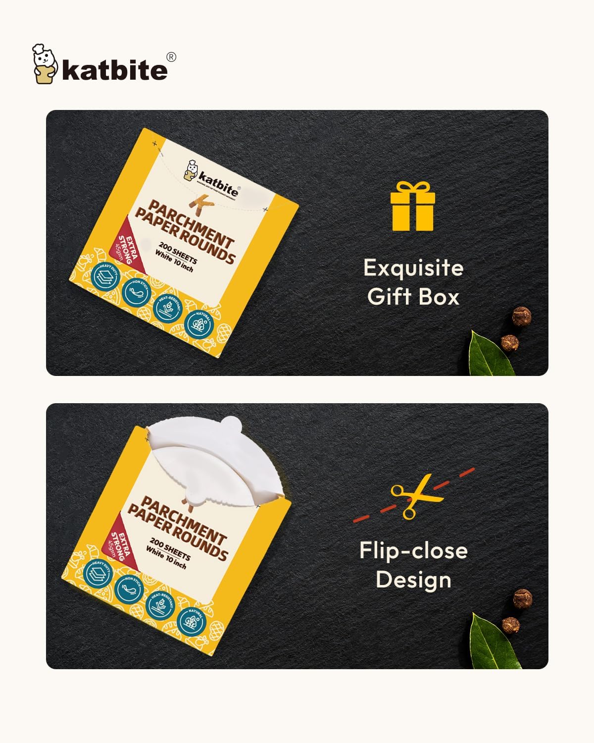 Katbite Heavy Duty Parchment Rounds 10 Inch, 200Pcs Round Parchment Paper Rounds, Use for Cake Baking, Air Fryer Liners, Separating Frozen Patty, Toaster Oven, Tortilla Press