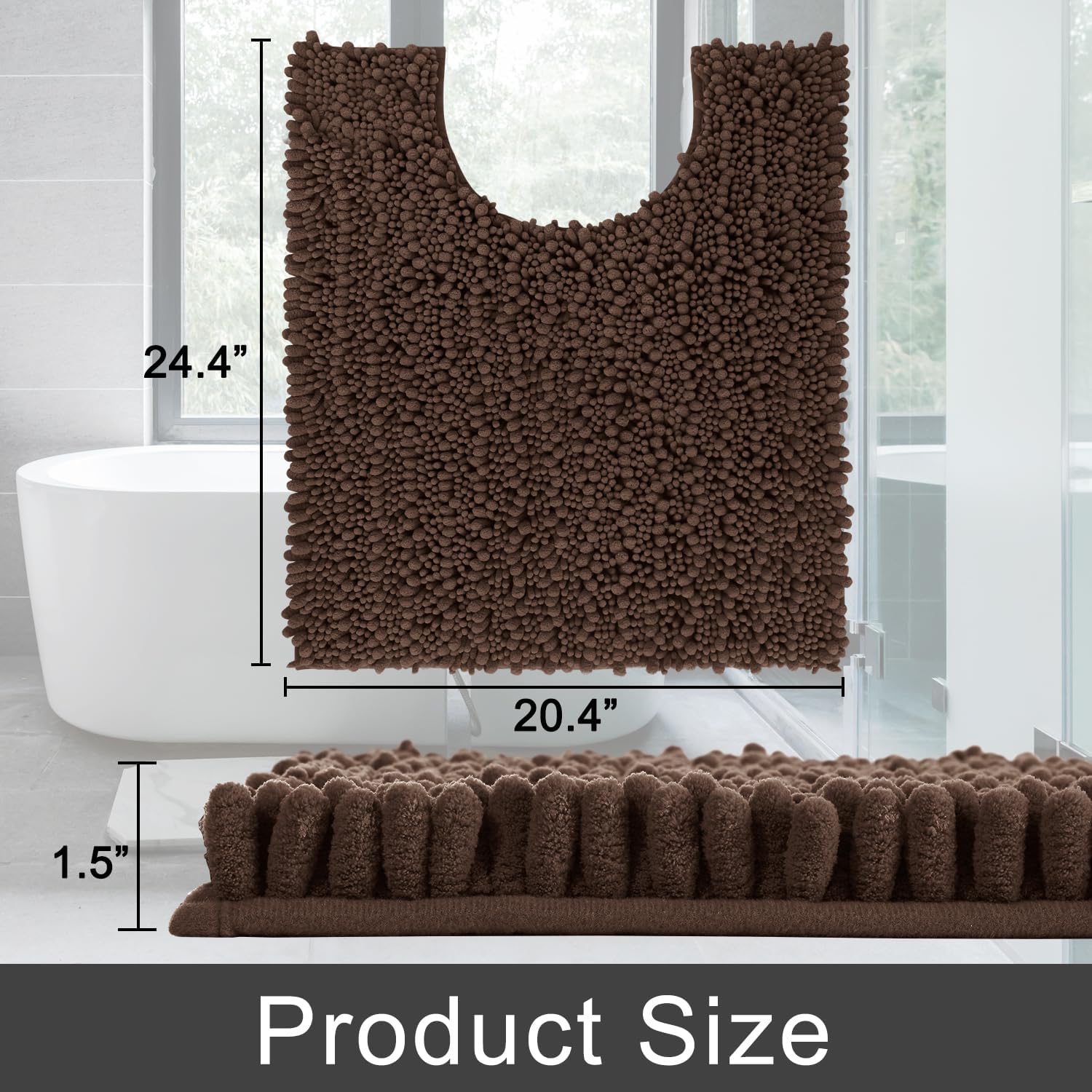 Yimobra Toilet Rug U Shaped Washable 24x20 Inch - Ultra Soft Absorbent Chenille Bath Rugs for Toilet, Quick Dry & Machine Washable, Non Slip Contour Bathroom Mat, Brown