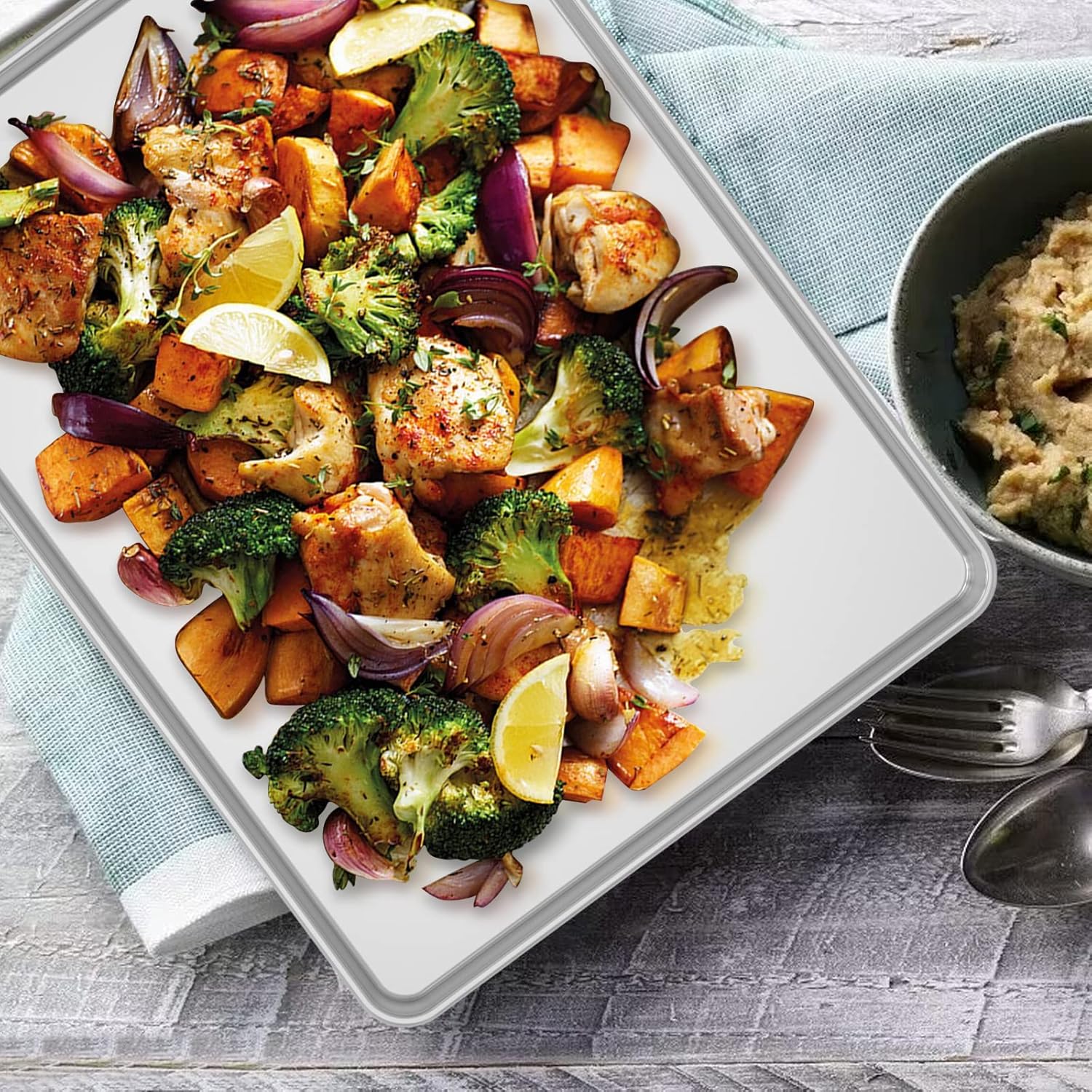 - PREMIUM MATERIAL: No more aluminum into your food, great replacement to aluminum pan. The baking sheet pan is made of high quality stainless steel without chemical coating or any other materials