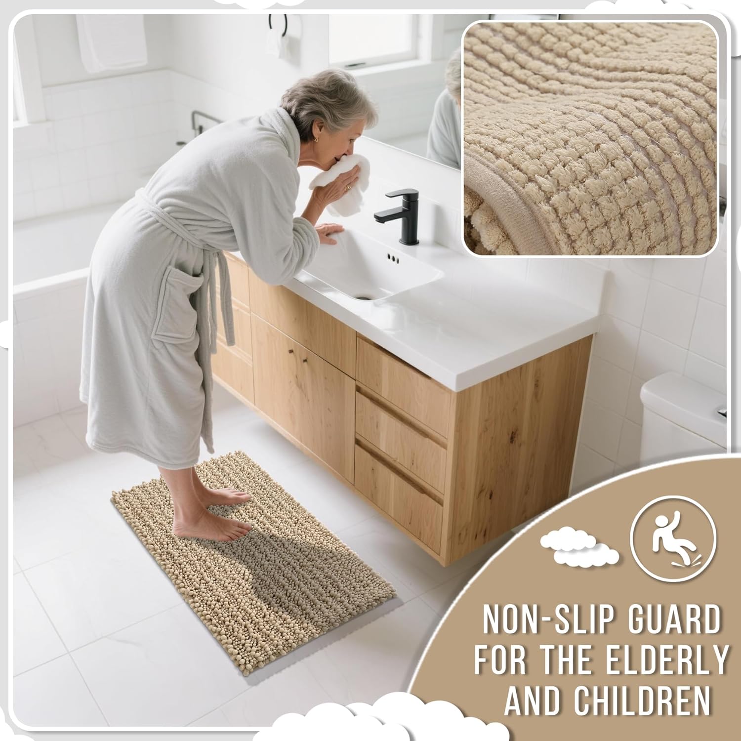 Yimobra Bathroom Rugs Non Slip Washable 32x20 Inch - Ultra Soft Absorbent Chenille Bath Mat, Quick Dry Shaggy Floor Carpet for Tub Shower, Pale Khaki Home Decor Accessories