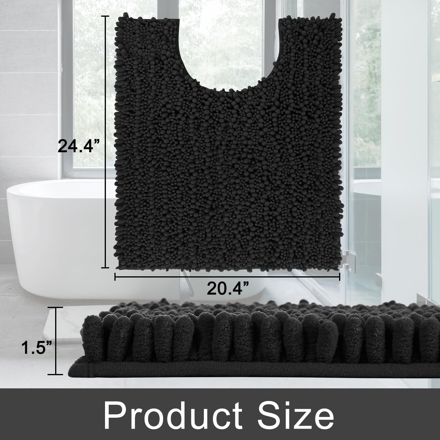 Yimobra Toilet Rug U Shaped Washable 24x20 Inch - Ultra Soft Absorbent Chenille Bath Rugs for Toilet, Quick Dry & Machine Washable, Non Slip Contour Bathroom Mat, Black