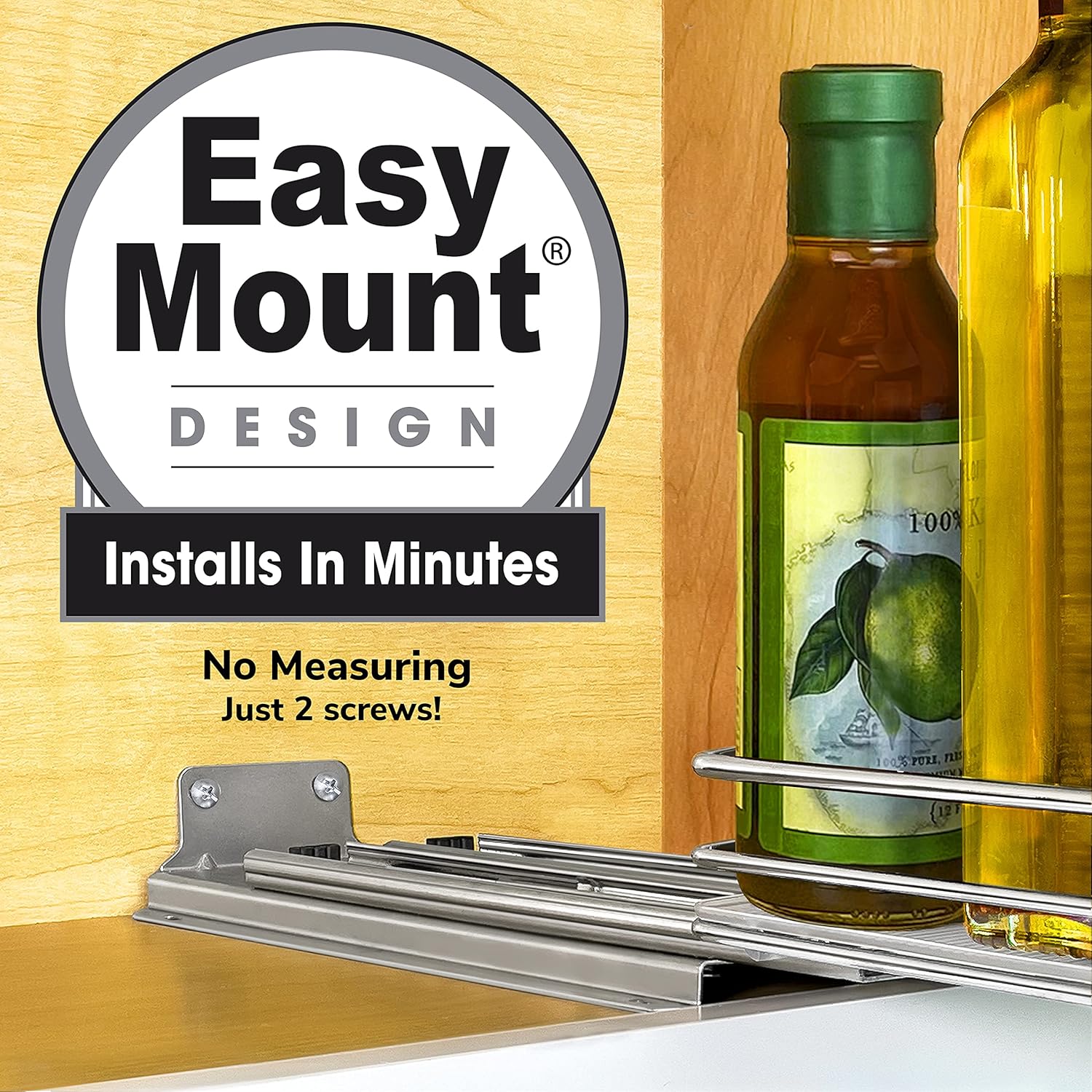 - SETUP IS A BREEZE! – no struggling within limited space trying to place four awkward and difficult to reach screws inside your upper cabinets or into pantry shelves – our exclusive EASY MOUNT cabinet friendly drawer design installs with just two screws in the easily accessible back of your narrow cabinets – in minutes with no measuring!