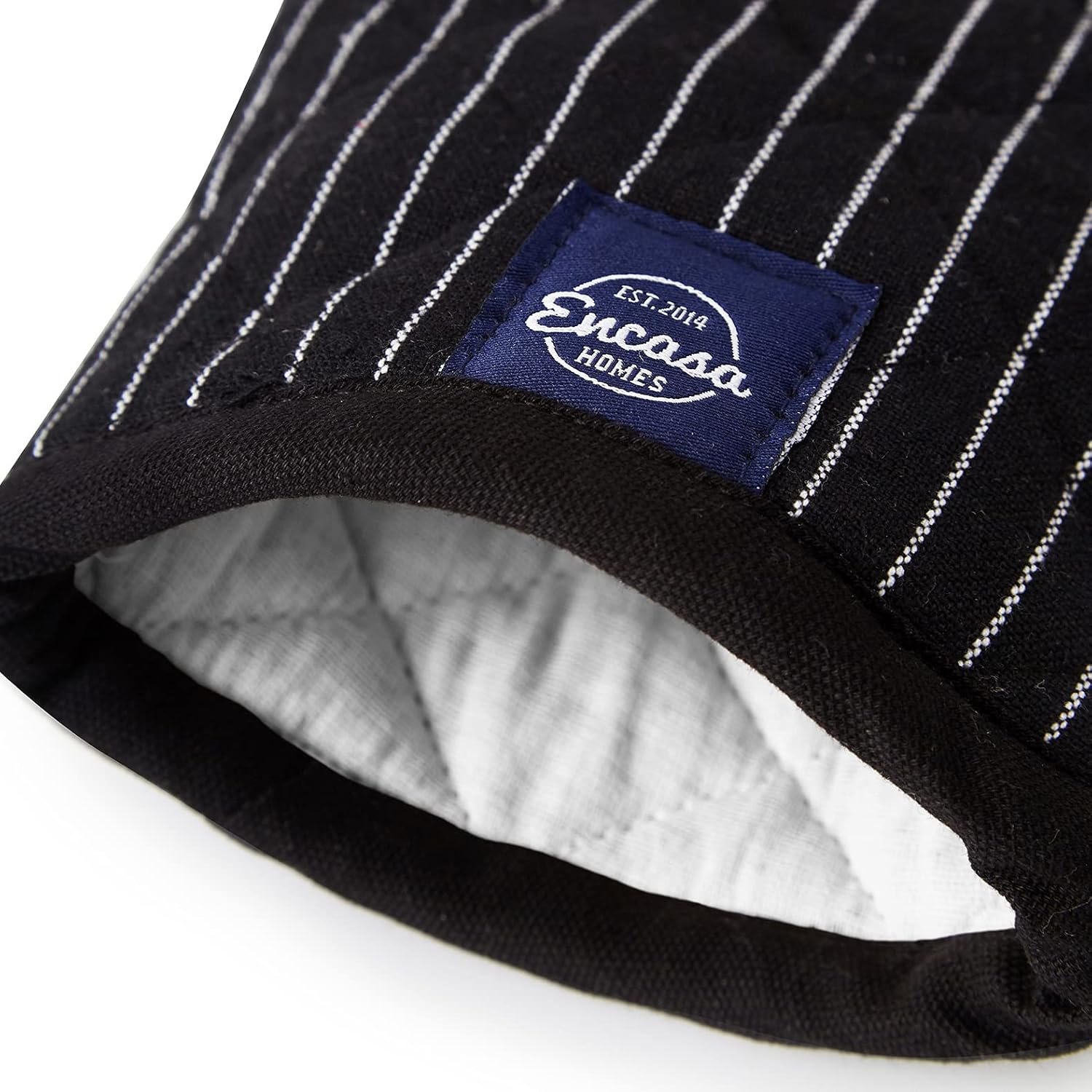 Encasa Homes Long 12" Oven Microwave Hand Gloves Mitts (2 pc Set) for Kitchen Cooking & Baking - Heat Resistant, Thick & Safe, Protection of Hands from Hot Utensils - Butcher Stripes Black
