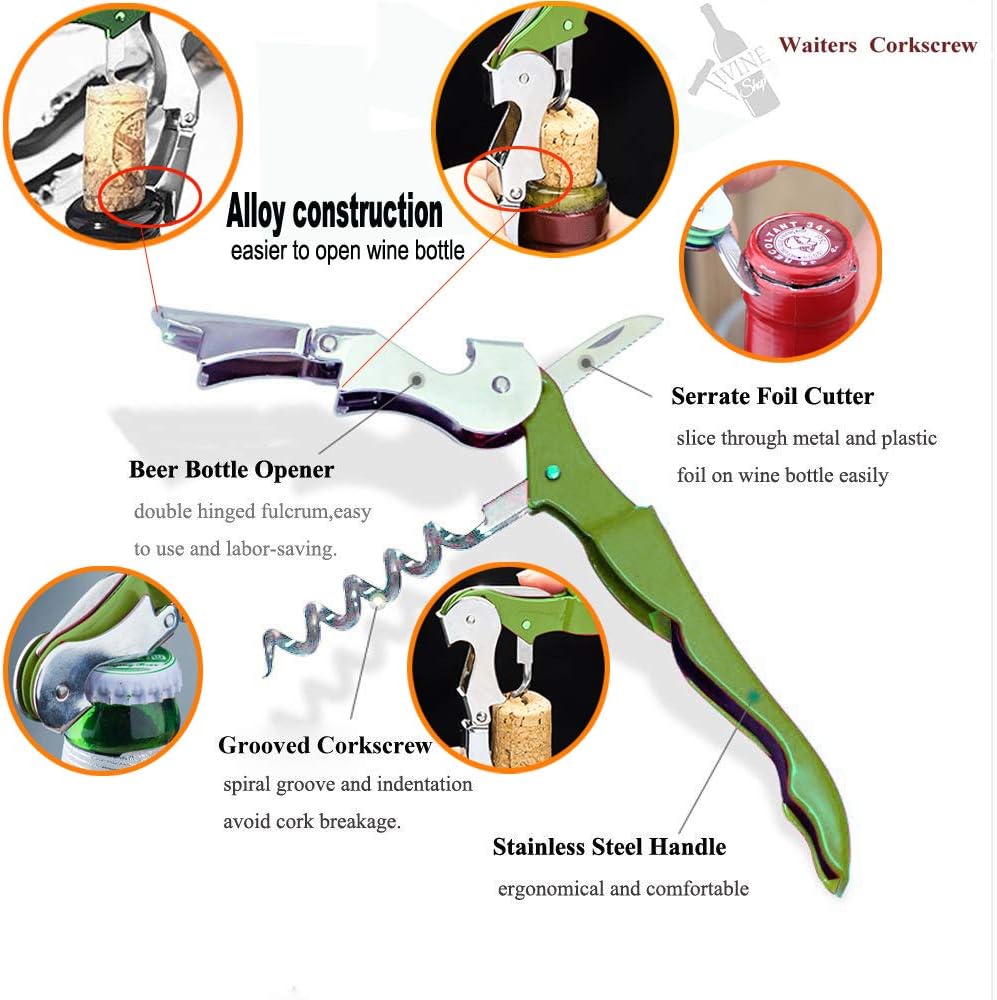 Professional Waiter Corkscrew Wine Openers Set (4 PCS),Upgraded With Heavy Duty Stainless Steel Hinges Wine Key for Restaurant Waiters, Sommelier, Bartenders