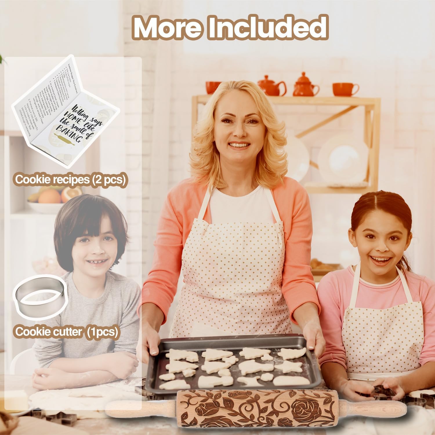 - 🍪 100% Natural Beech Wood. Made from solid beech hardwood, our floral patterned rolling pins for baking springerle cookies are healthy and durable. Rose embossed rolling pins for cookies are expertly engraved, sanded and finished, with deep engraving and clear pattern. Bonus cookie cutter (1 pcs) and cookie recipes (2 pcs) are included along with the decorative rolling pins for baking.