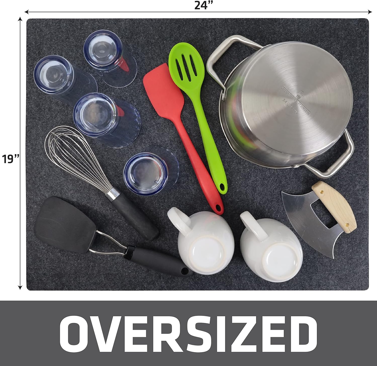Drymate XL Dish Drying Mat, Oversized (19”x24”), Low-Profile, Super Absorbent, Quick Dry Fabric, Waterproof & Slip-Resistant, for Kitchen Counter, Trimmable, Easy to Clean (USA Made)(Charcoal)