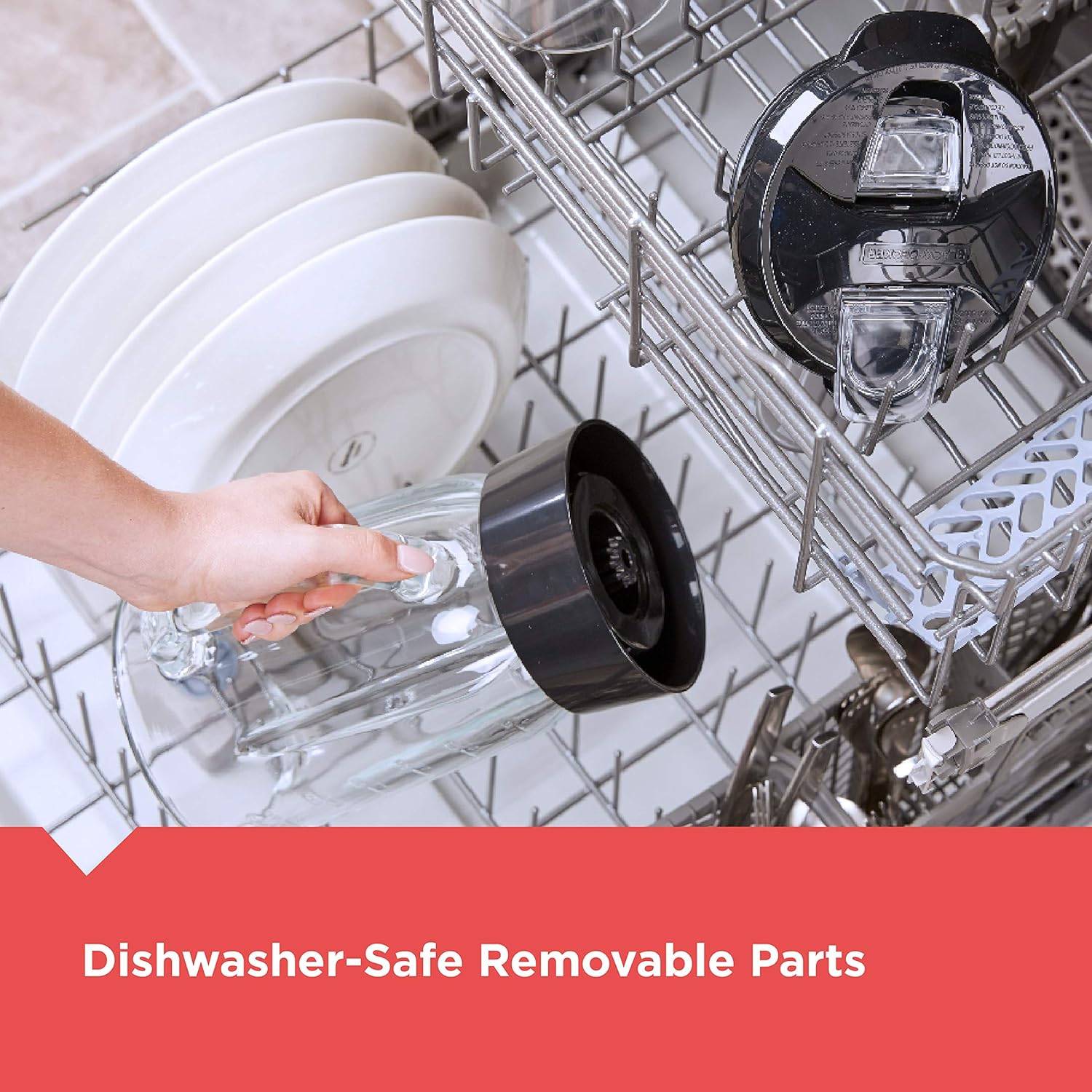 - DISHWASHER SAFE REMOVABLE PARTS: Cleanup is a breeze with the dishwasher-safe jar, blade, and lid. Simply remove from base, dissemble, and run through the dishwasher as recommended.