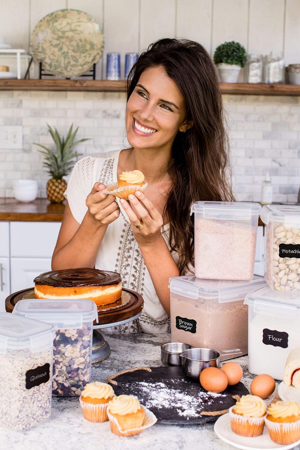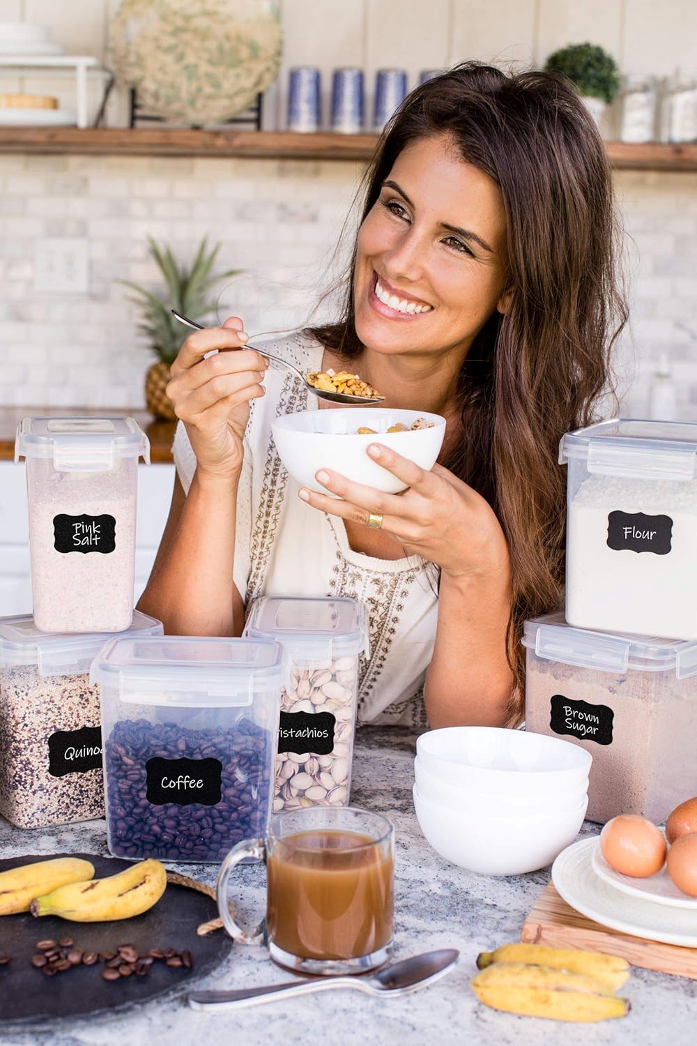 - VERSATILE SIZE MIX: Includes multiple container sizes to store a wide variety of pantry staples from cereal and pasta to flour, sugar, rice, oats, coffee, tea, snacks, and more. Ideal for keeping every ingredient in its perfect place while maintaining a tidy kitchen.