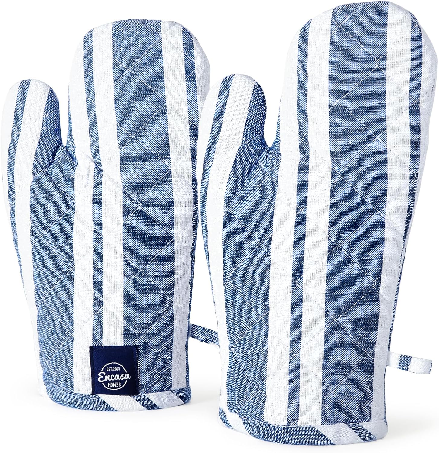 Encasa XO Long 12"x7" Oven Microwave Hand Gloves Mitts (2 pc Set) for Kitchen Cooking & Baking - Heat Resistant, Thick & Safe, Protection of Hands from Hot Utensils - Franca Blue Stripes