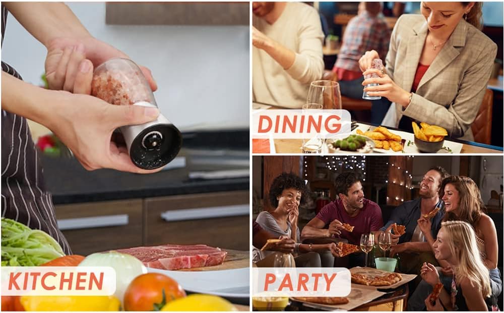 - ✅Premium Food Grade Glass and Stainless Steel Cap- Salt and pepper grinder with food grade transparent glass which is safe and user-friendly for easy refill. The stainless Steel grinder cap won't rust and is scratch-proof.