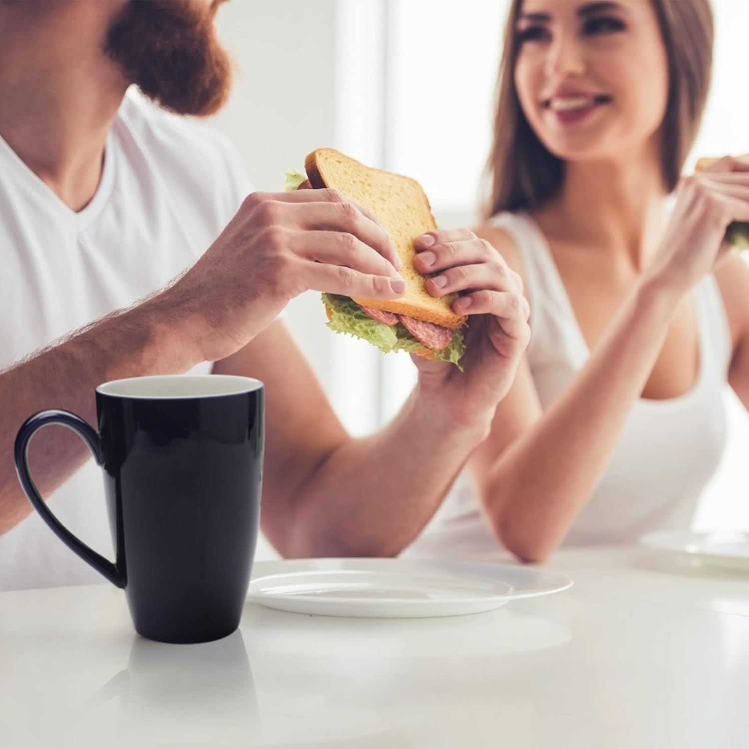 - [Multi-purpose]-2-pack 16 ounce porcelain tea mug. Perfect for drinking coffee, tea, hot cocoa and other heated beverages, reusable coffee or tea cups. Suitable for home use, office use, food service, etc.