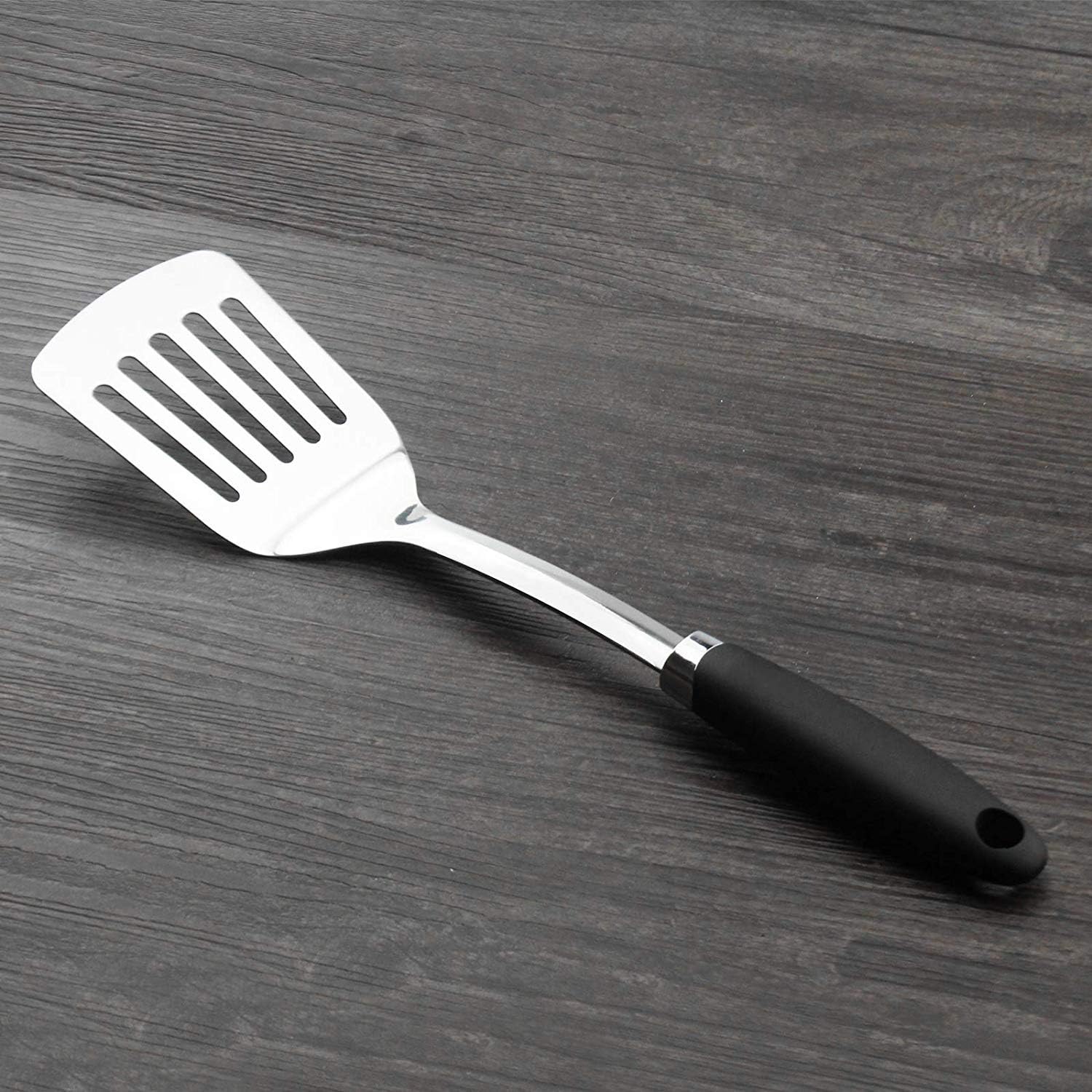 Brushed Slotted Stainless Steel Turner, Non-Slip Spatula with Ergonomic Handle