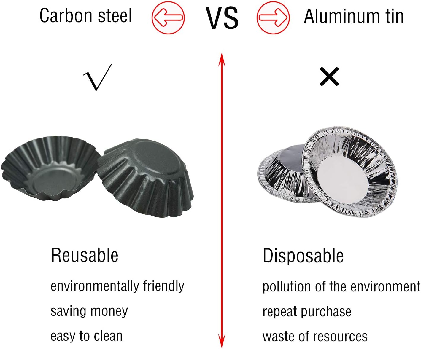 - Reusable and high temperature resistant mini pie tins- carbon steel material, better than disposable aluminum, can be reusable; temperature resistant up to 446β, useful for oven