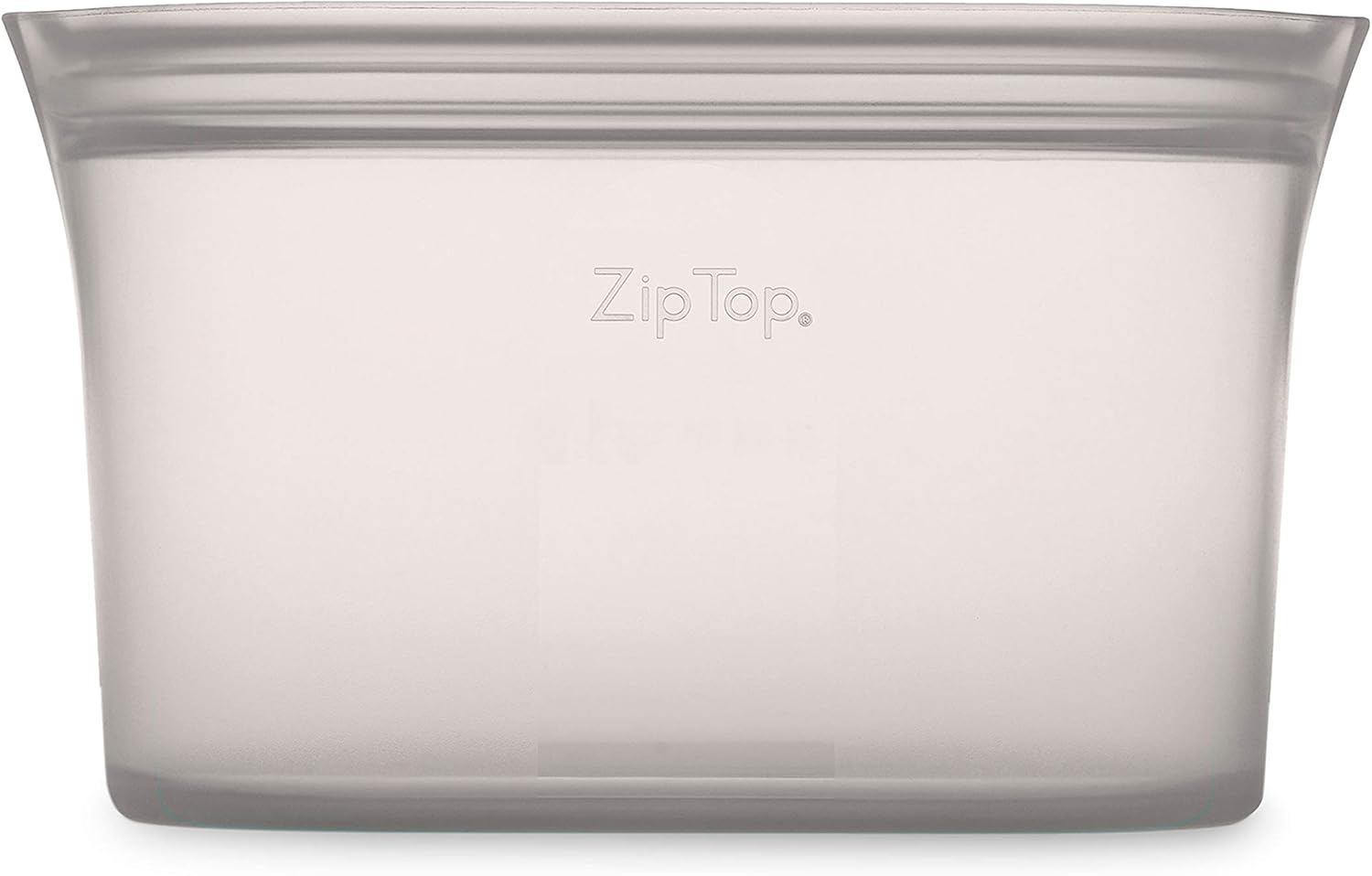 Zip Top Reusable Food Storage Bags | Large Dish [Gray] | Silicone Meal Prep Container | Microwave, Dishwasher and Freezer Safe | Made in the USA