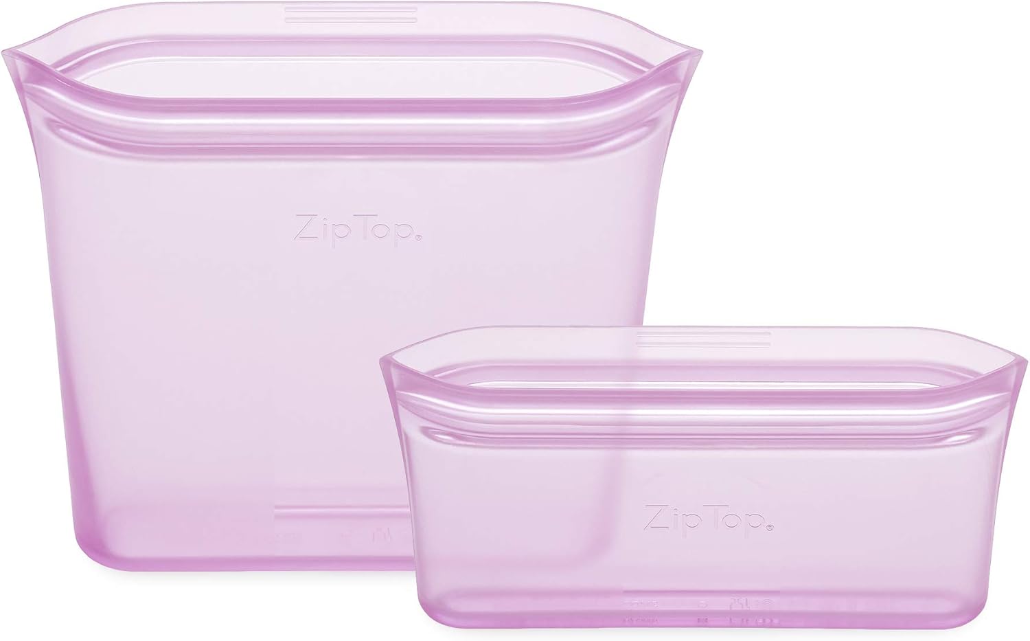 Zip Top Reusable Food Storage Bags | 2 Bag Set [Lavender] | Silicone Meal Prep Container | Microwave, Dishwasher and Freezer Safe | Made in the USA