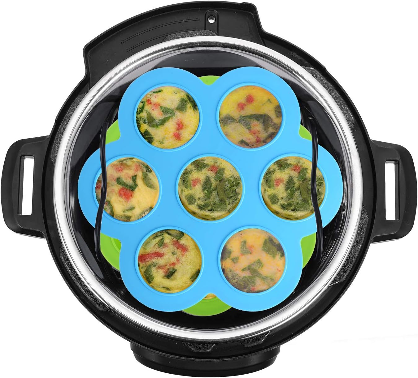ROTTAY Silicone Egg Bites Molds and Steamer Rack Trivet with Heat Resistant Handles Fit Instant Pot Accessories, 7pcs set for 6qt & 8qt Electric Pressure Cooker With 2 Spoons and Silicone spatula
