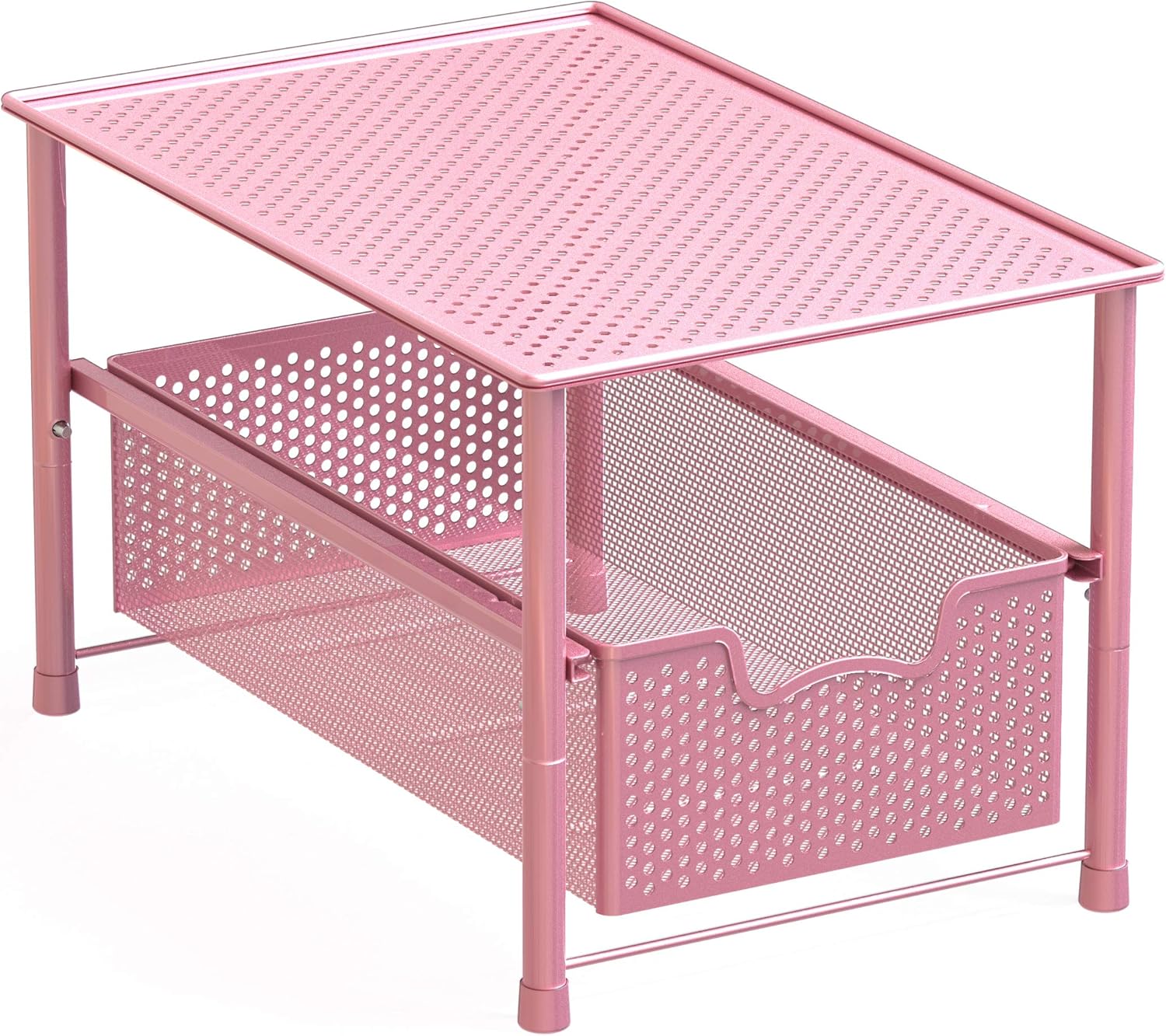 Simple Houseware Stackable Under Sink Cabinet Sliding Basket Organizer Drawer, Pink