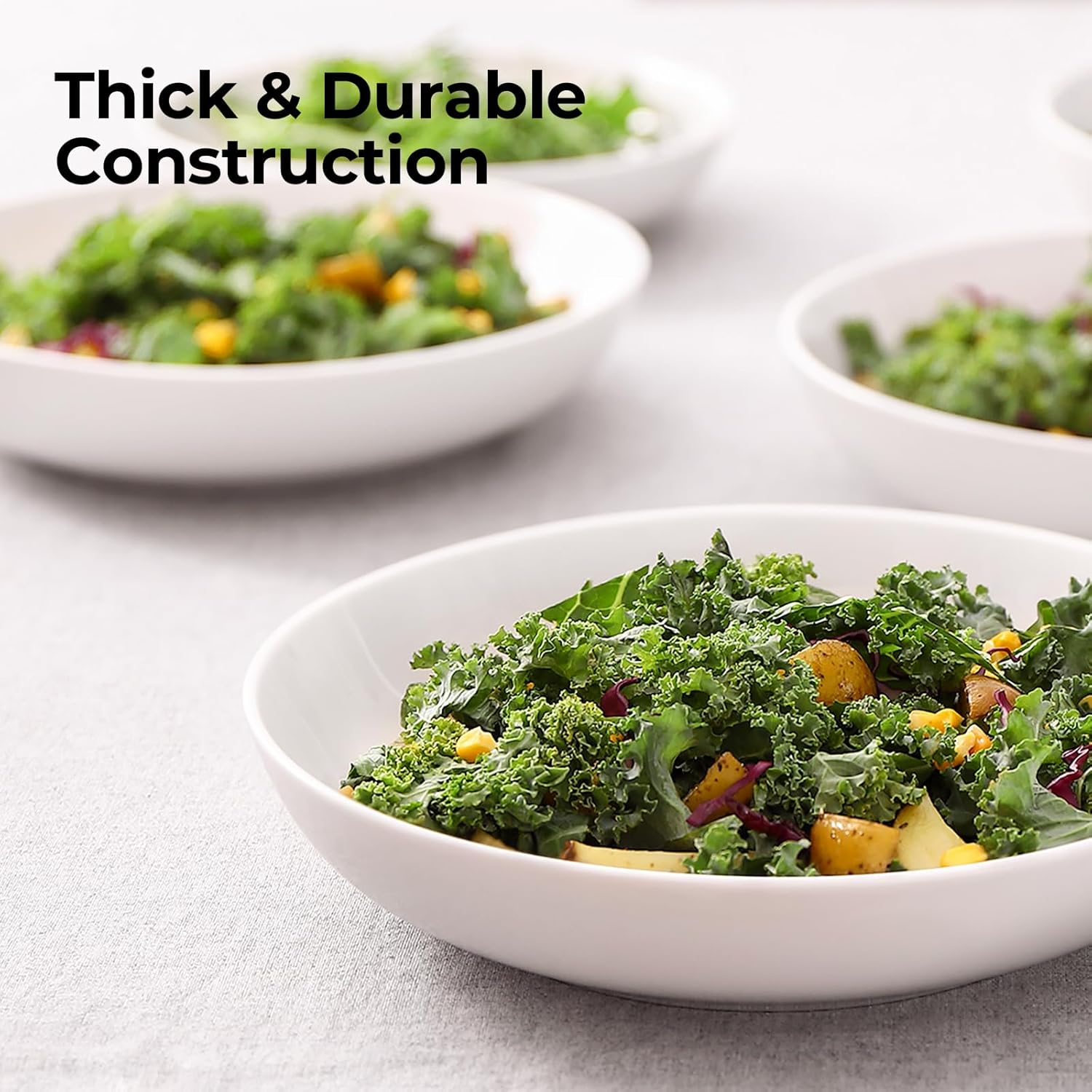 Y YHY 9.75" Large Pasta Bowls, 50 Ounces Big Salad Bowls, Ceramic Serving Bowl Set of 4, Wide and Shallow Bowls Set, Microwave and Dishwasher Safe, White