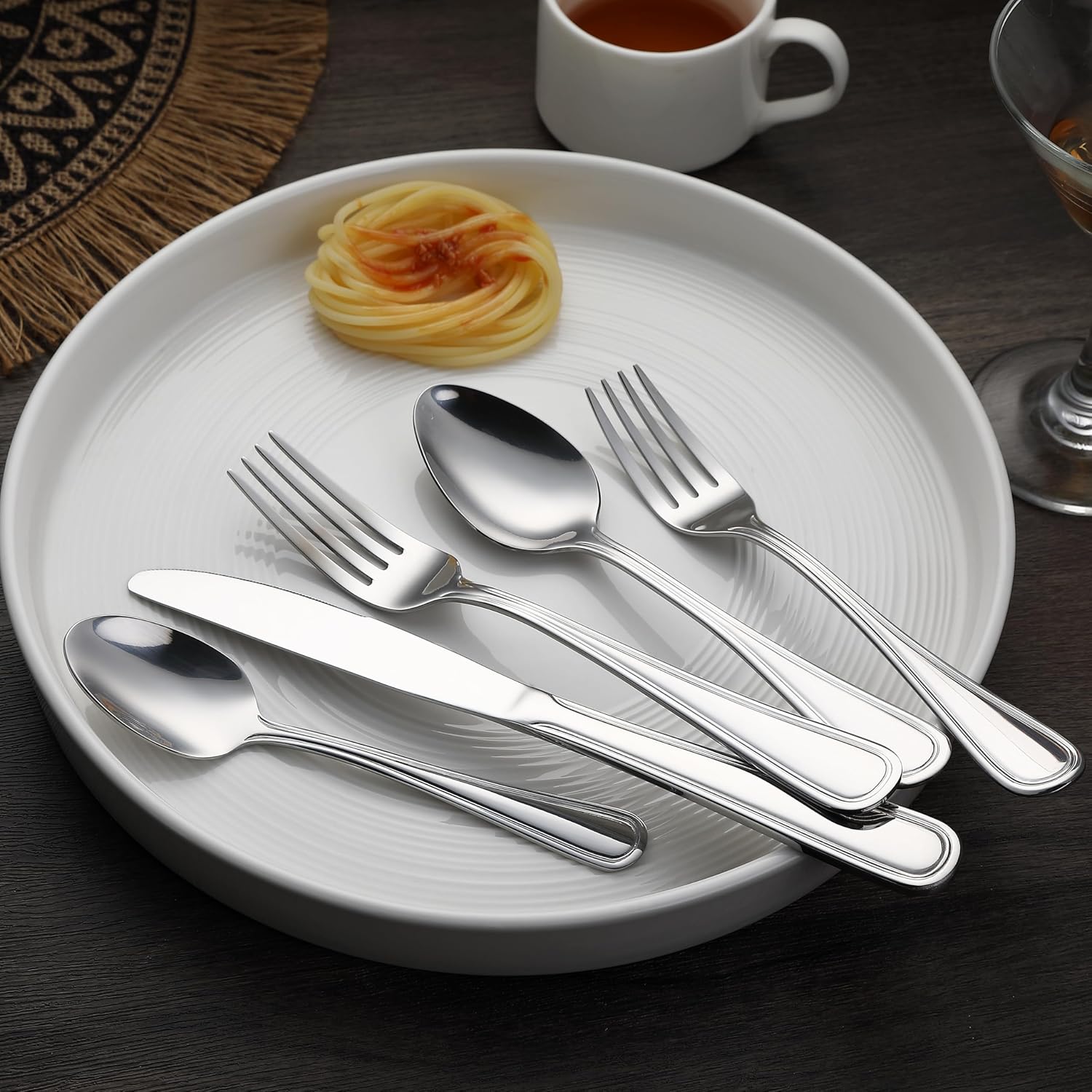 - DURABLE STAINLESS STEEL: This stainless steel silverware set is designed to last, offering reliable performance for everyday meals or special gatherings