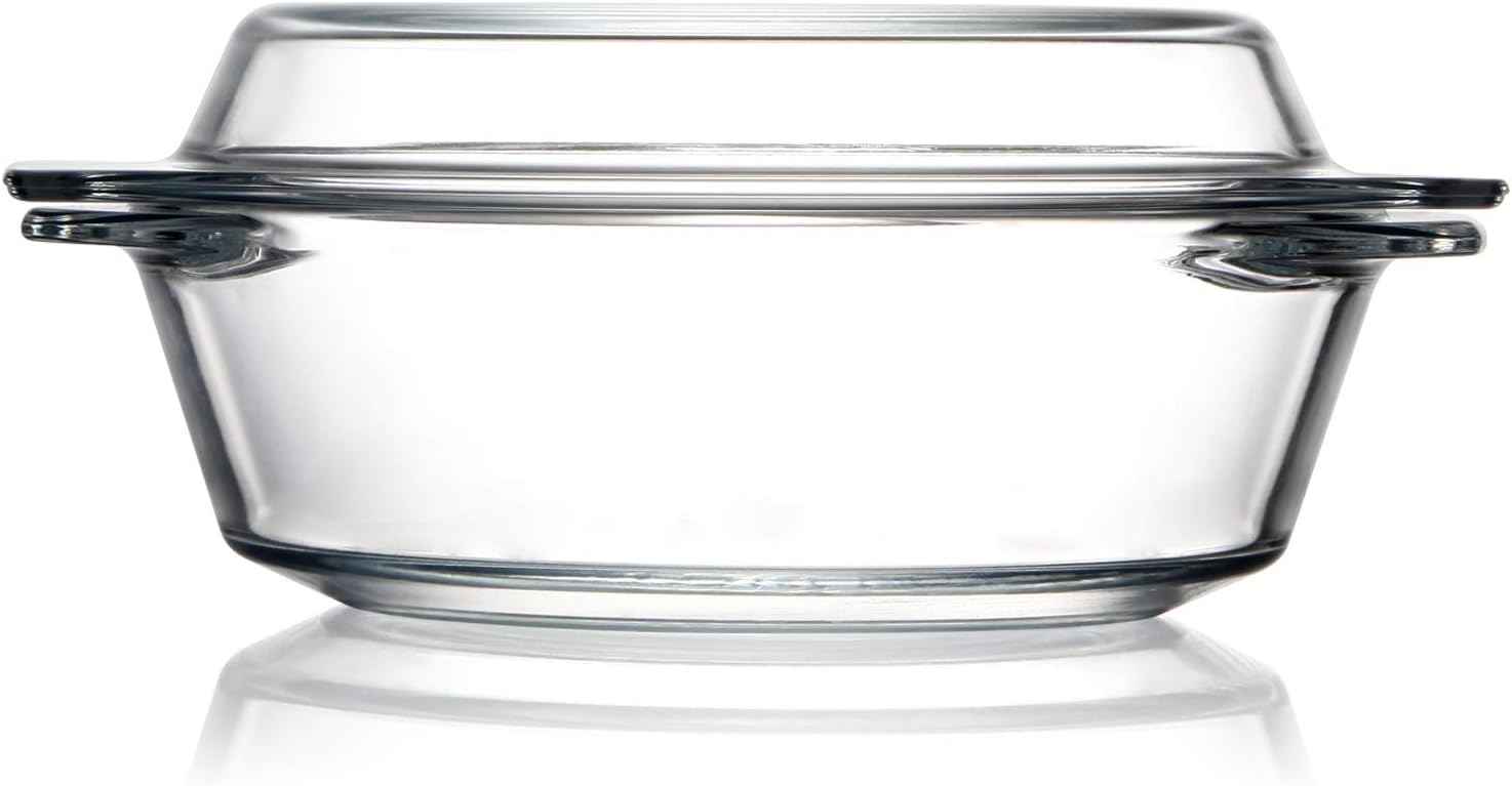 ZYER Round Glass Casserole With Glass Lid Covered Glass Bakeware Ovenware Easy Grab Glass Microwave Bowls with Glass Lid (1L)