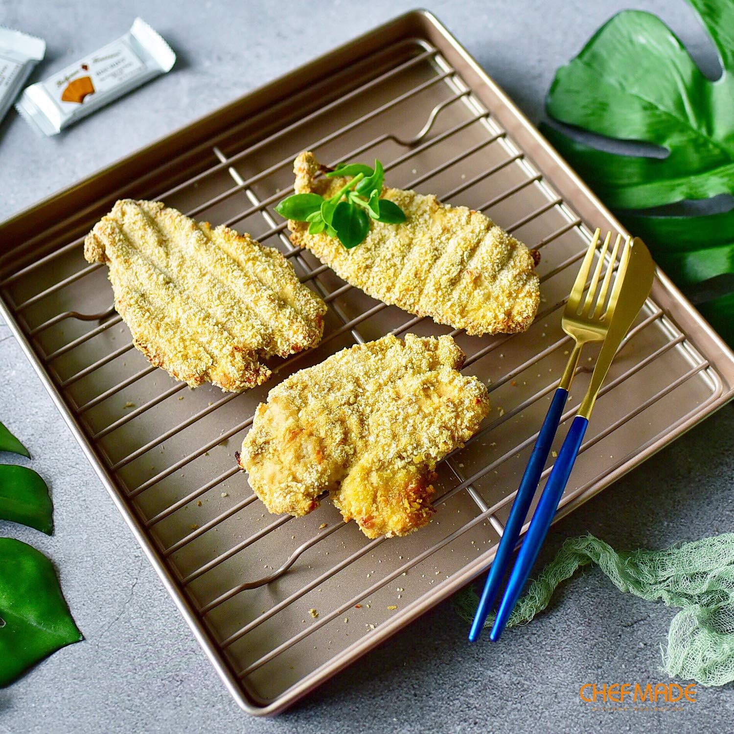 CHEFMADE Baking and Cooling Rack, 10.8-Inch Non-Stick Square Wire Rack for Oven Baking (Champagne Gold)