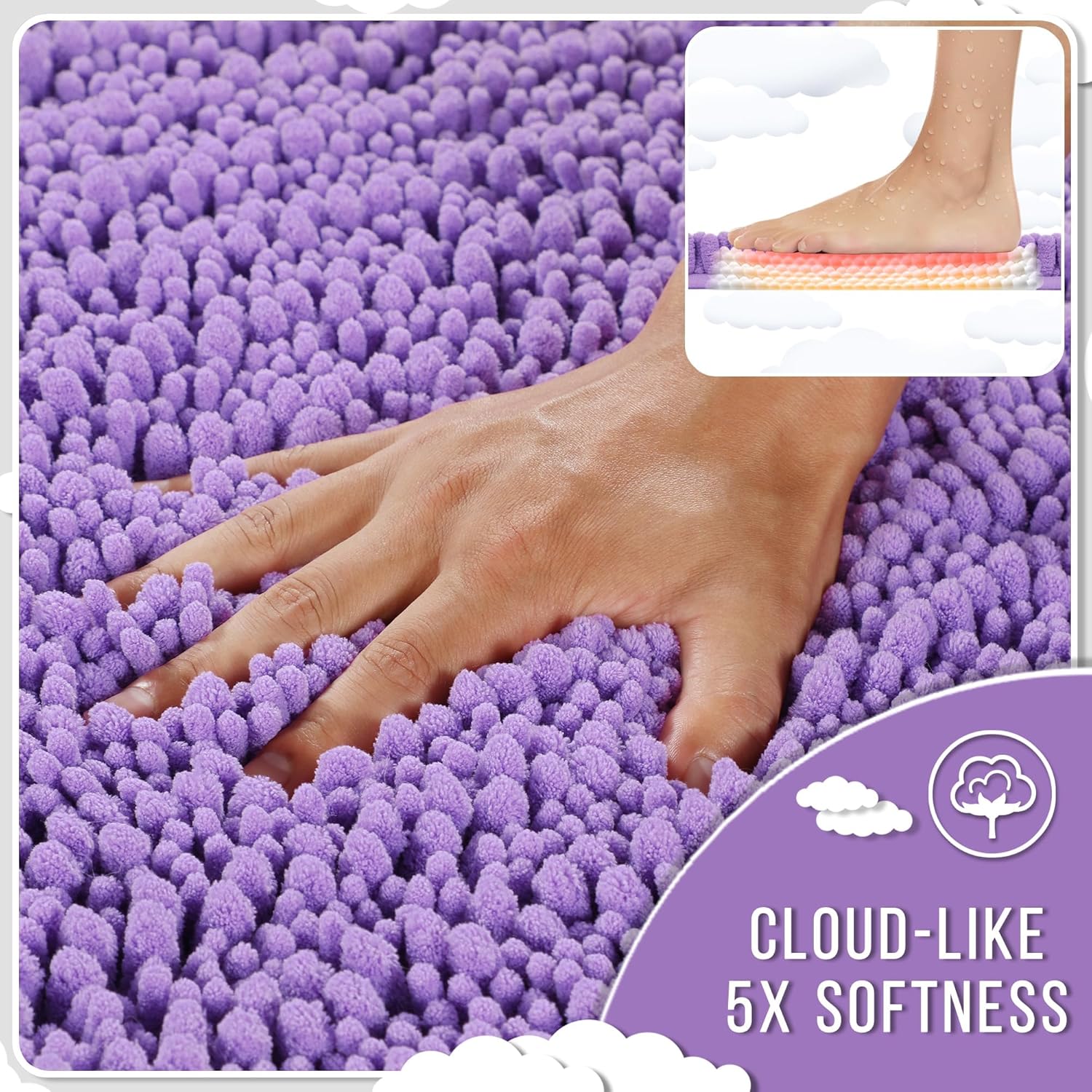 - Ultimate Cloud-Like Soft Comfort: Experience walking on clouds with our extra thick chenille bathroom mat! The ultra plush high pile density cradles your feet, banishing cold tiles after showers. It is perfect for adding warmth to any bathroom floor, transforming routine steps into luxury moments