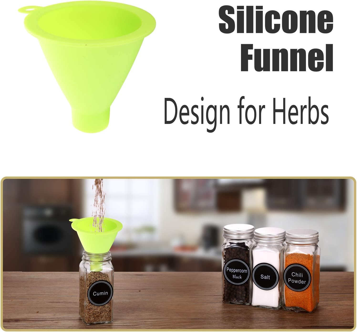 - CONVENIENT SILICONE SPICE FUNNEL: The funnel specially designed for spice makes it easier to add new spices to your spice containers.