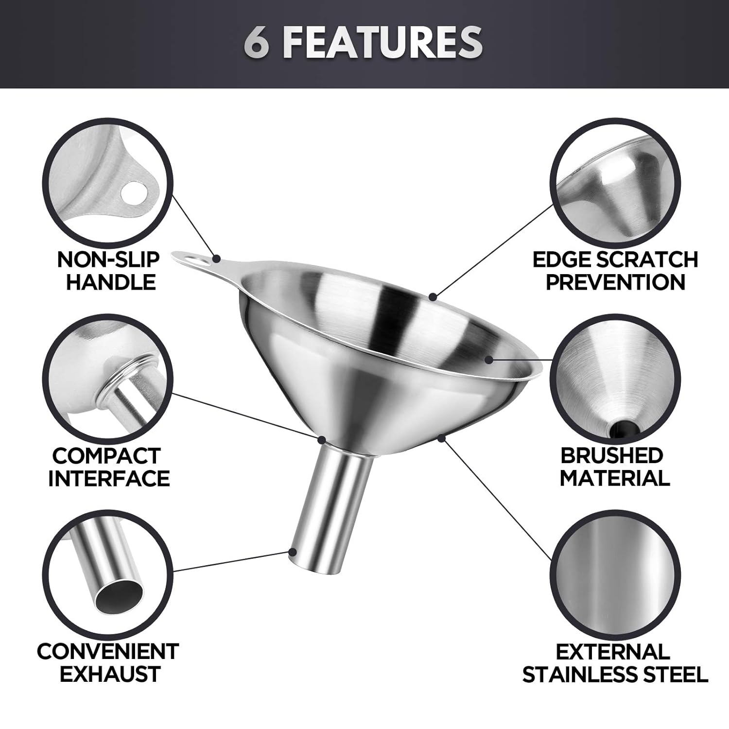 - Stainless Steel Funnels: The metal kitchen funnels are well made of 304 stainless steel, safe to use, provides stability and extra security. Long lasting, hard to break