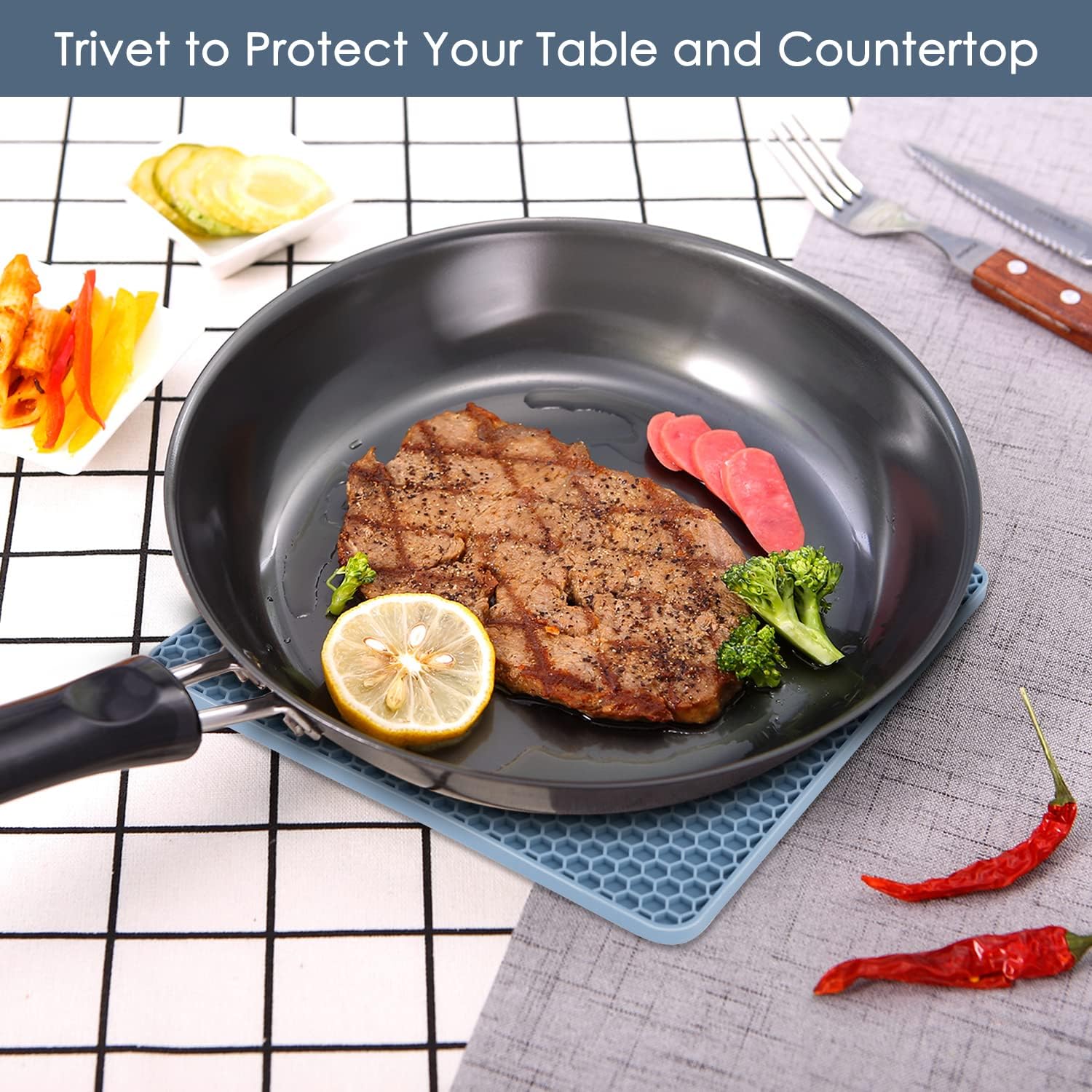 - đăPREMIUM SAFE MATERIALă- Our trivet made from 100% BPA-free food-grade silicone, safey for food. Non-slip, these trivets for hot dishes are flexible enough to comfortably grab a hot dish or pan. Also can as dish drying mat helps dry items when you need to drying.