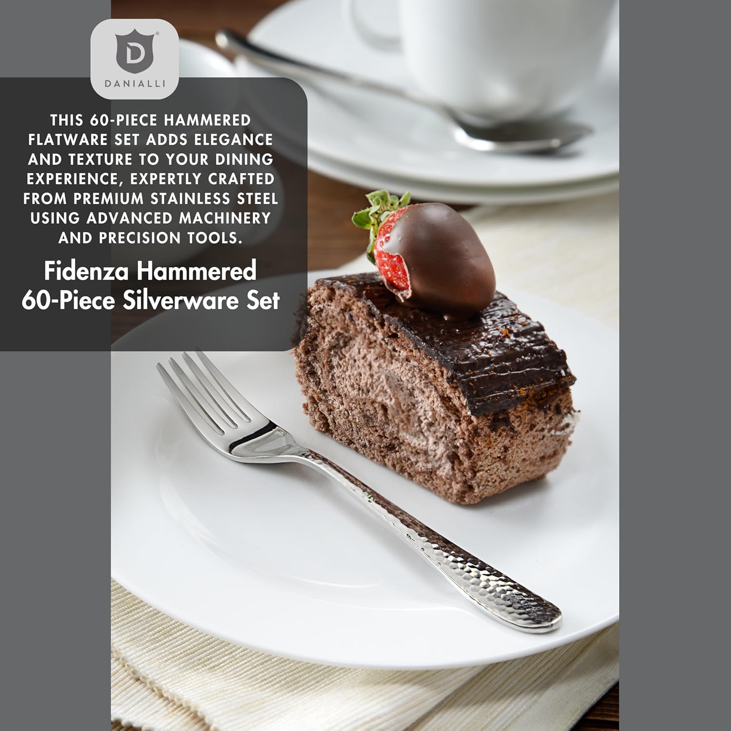 Hammered Silverware Set | Premium 18/10 Stainless Steel Flatware Service for 12 | Heavy-Duty & Dishwasher Safe | Built to Last (60-Piece, Fidenza Hammered)