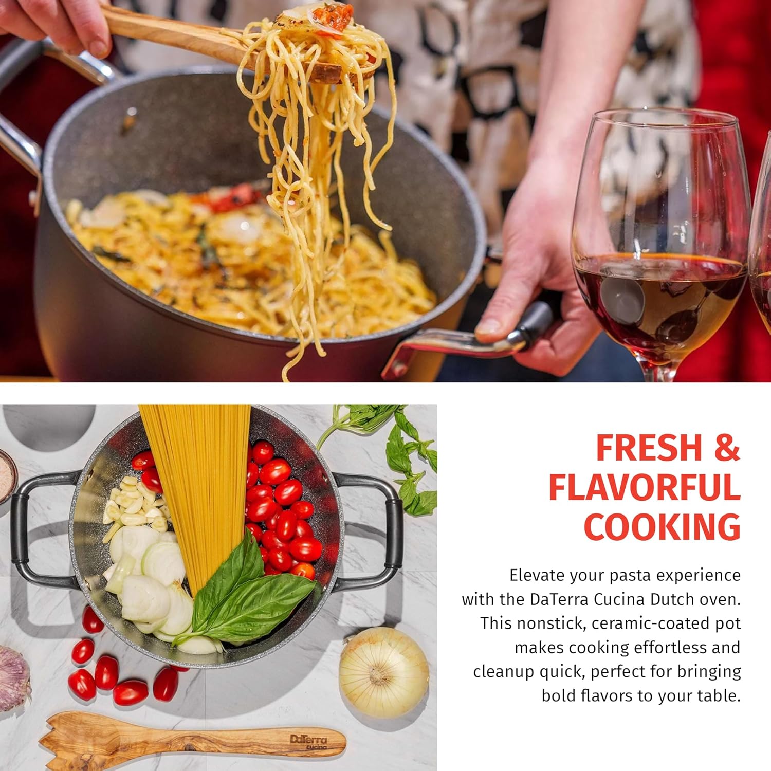 - EASY TO USE & MAINTAIN: The DaTerra Cucina Dutch Oven’s nonstick surface ensures easy cooking without sticking. Oven-safe up to 450°F, this pot makes meals simple and hassle-free. Whether you’re cooking soups, roasts, or searing, it provides excellent performance for every dish.