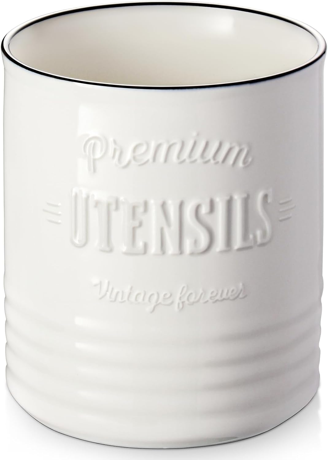 - Vintage Home Decor: This elegant and multi-purposed optimal utensil holder for kitchen counter, also serving as a utensil caddy or vase, is the best for those seeking a trendy, rustic farmhouse look. Add a little country charm to your home decor! If you’re looking for a memorable gift for your love, look no further, this will be a great gift she will use.