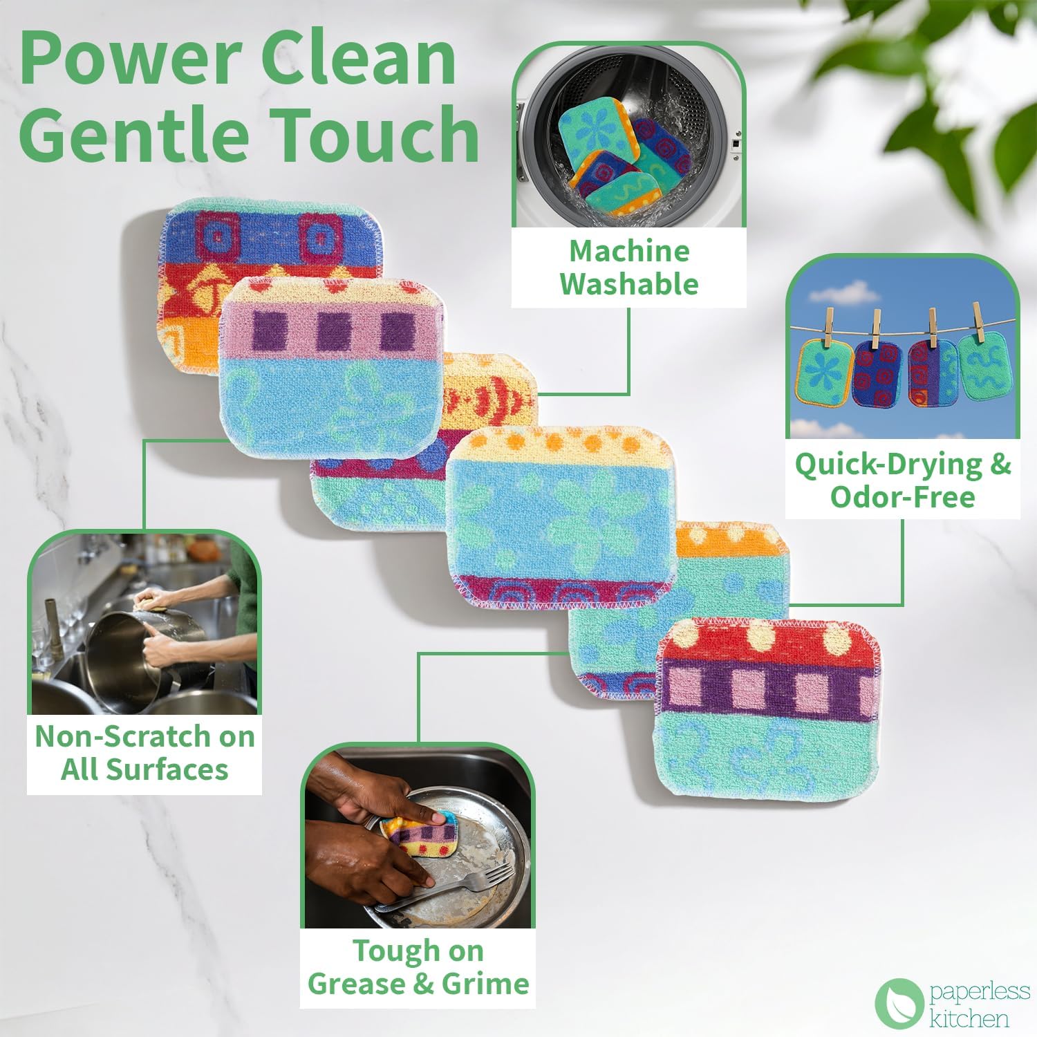 - Scratch Free Cleaning Surface: Our kitchen dishwash scrubs are made with a soft yet durable texture, this surface avoids scratches on delicate cookware, glassware, or counters. These non-scratch cleaning pads for the kitchen are ideal, as they can be used daily in the kitchen or bathroom without damaging surfaces. A perfect multi-purpose cleaning pad for every household.