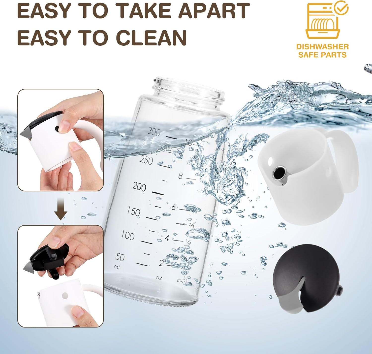- Easy to Detach and clean - The bird lid of the oil dispenser can be detached by pressing the bird's eys. The whole oil and vinegar dispenser set can use dishwasher or water to clean. If you have any quetions about the oil dispenser, please contact us .