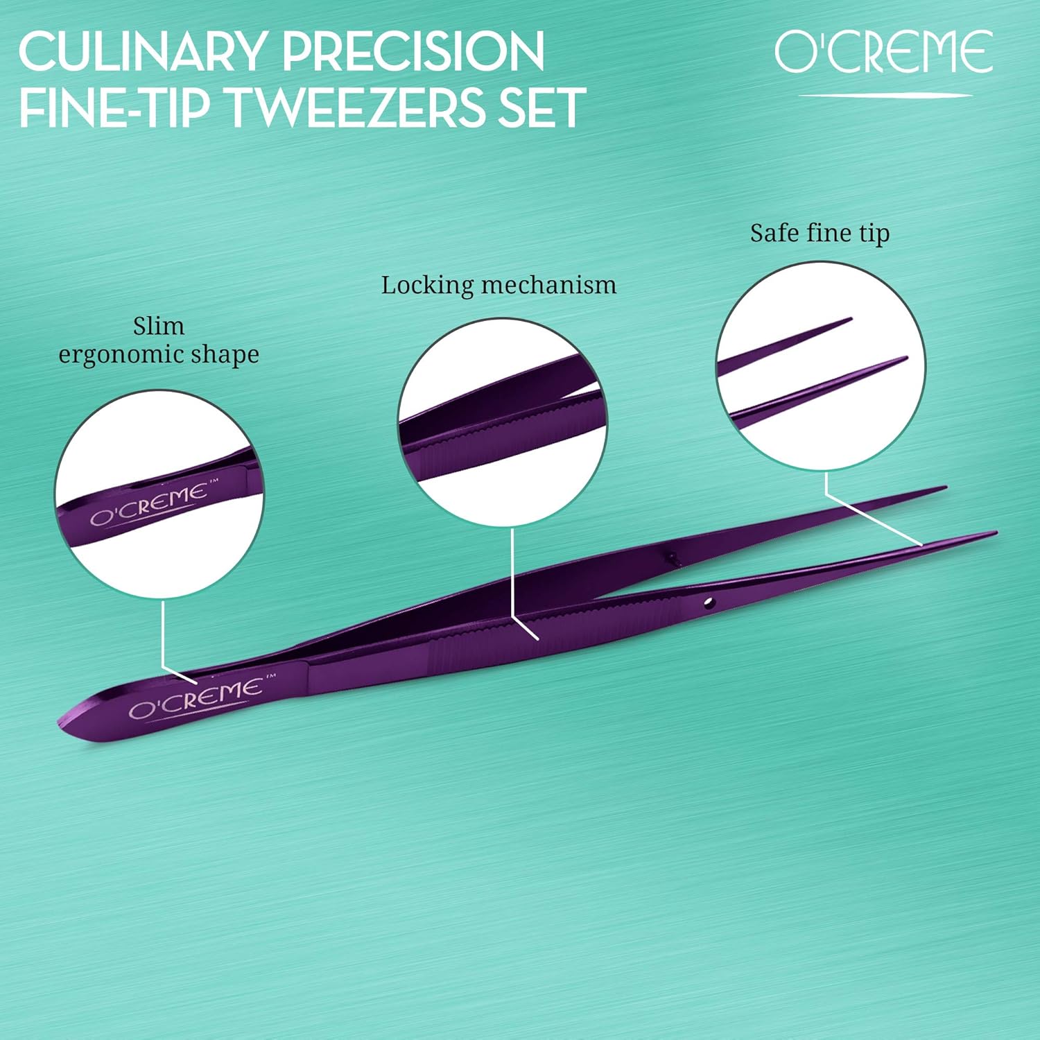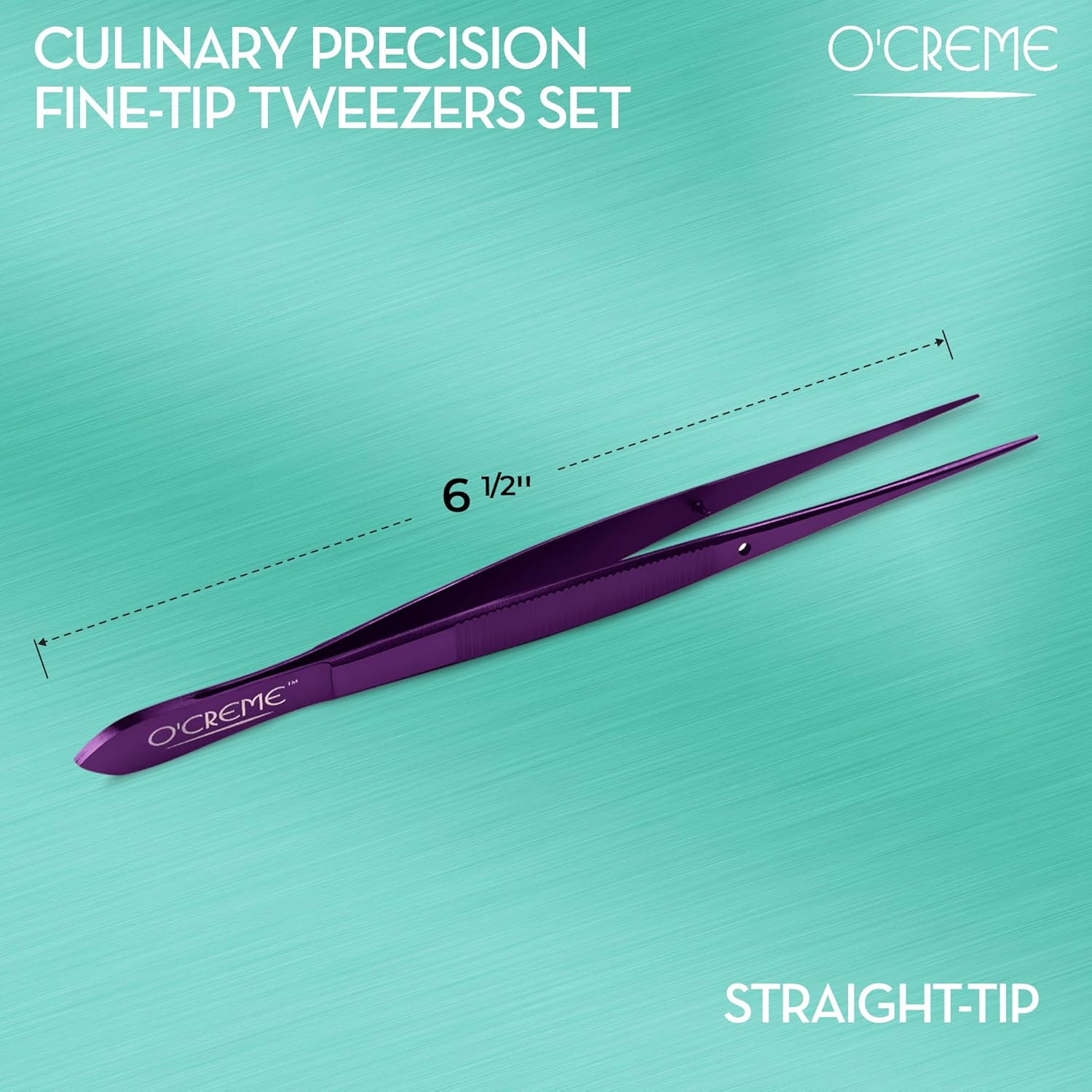 O'Creme Stainless Steel Precision Kitchen Tweezer Tongs 6.25" with Fine Tip (Purple)