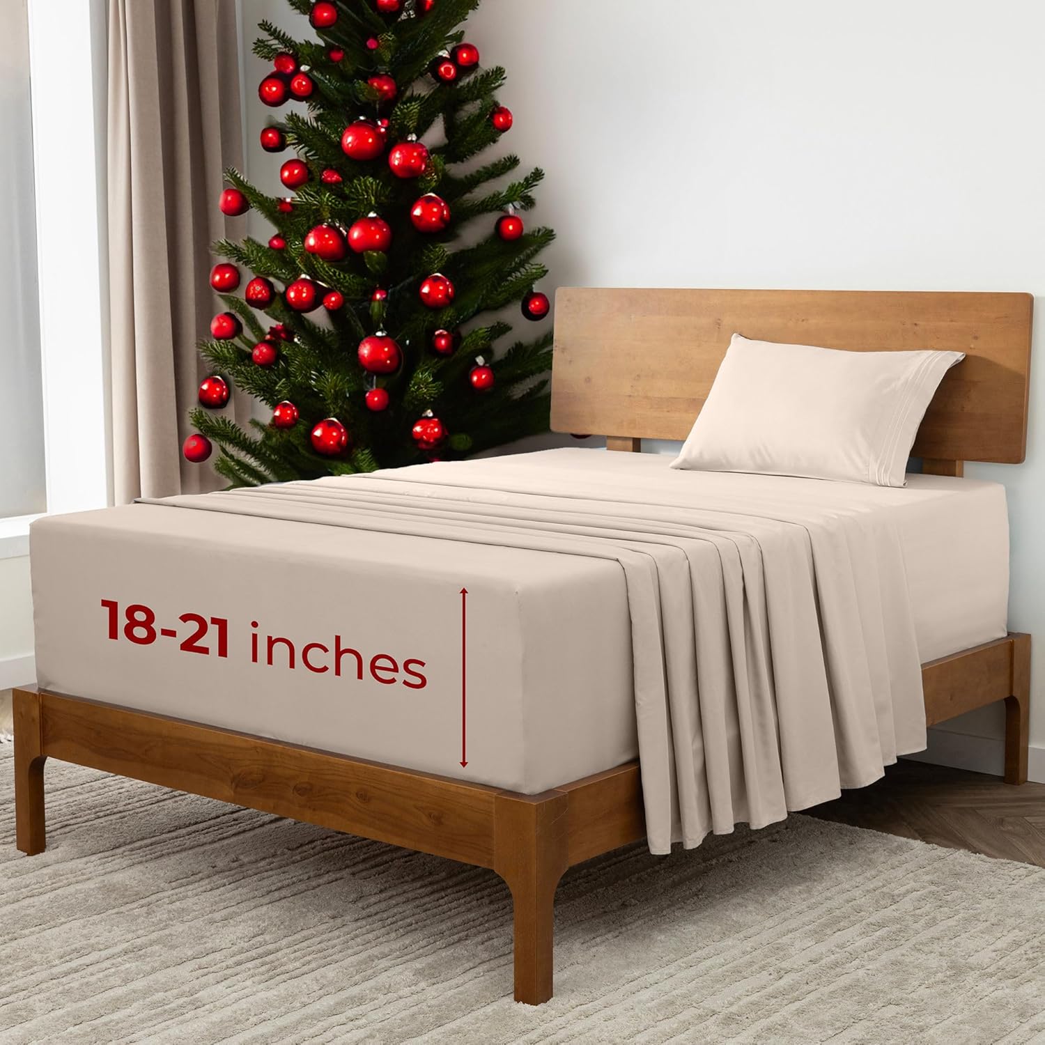 Mellanni Extra Deep Twin XL Sheets - 3 PC Iconic Collection Bedding - Hotel Luxury, Ultra Soft, Cooling Bed Sheets - Wrinkle, Fade, Stain Resistant (Twin Extra Long, Beige)