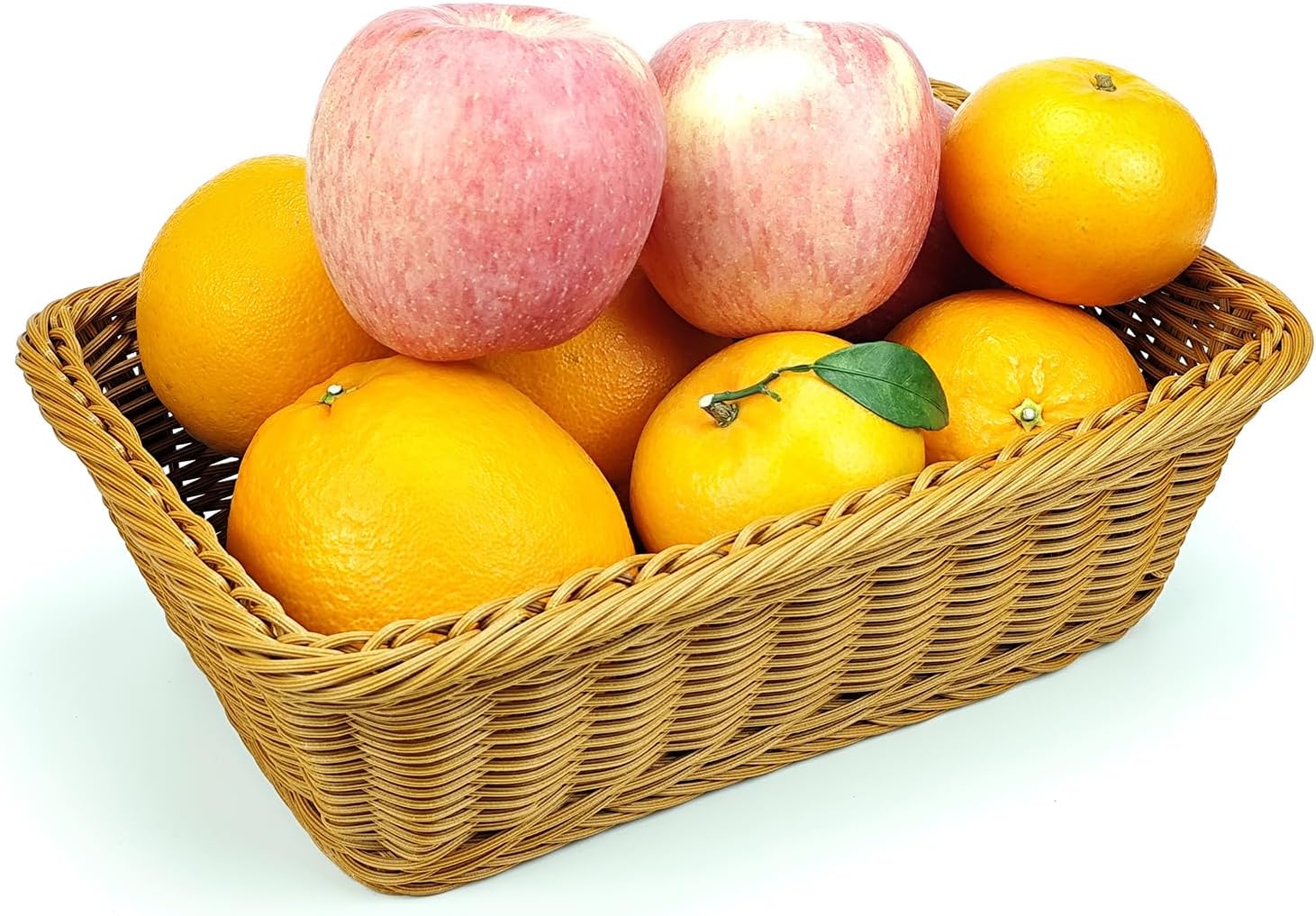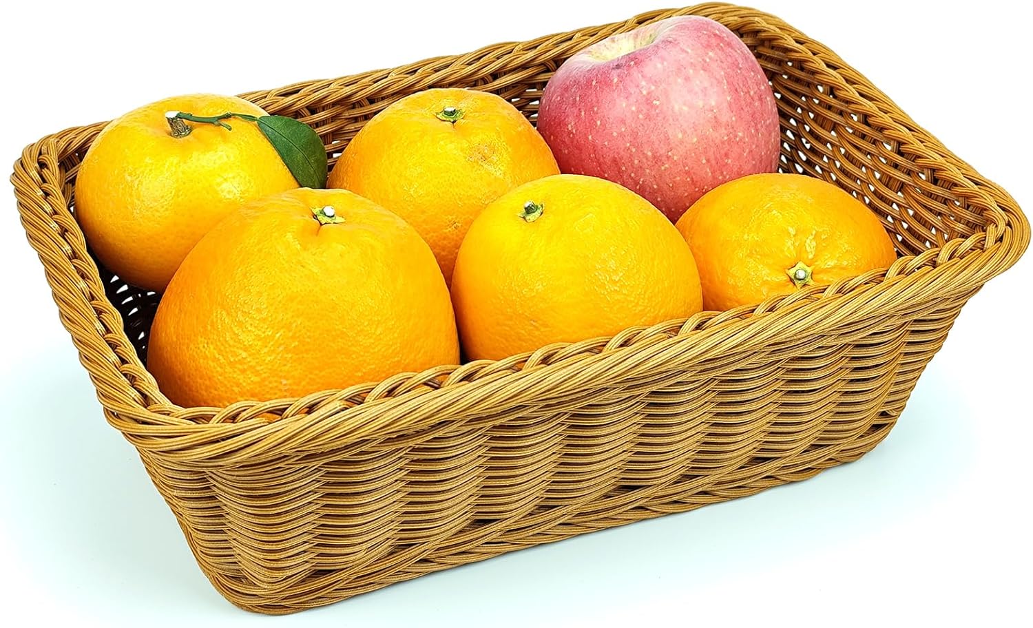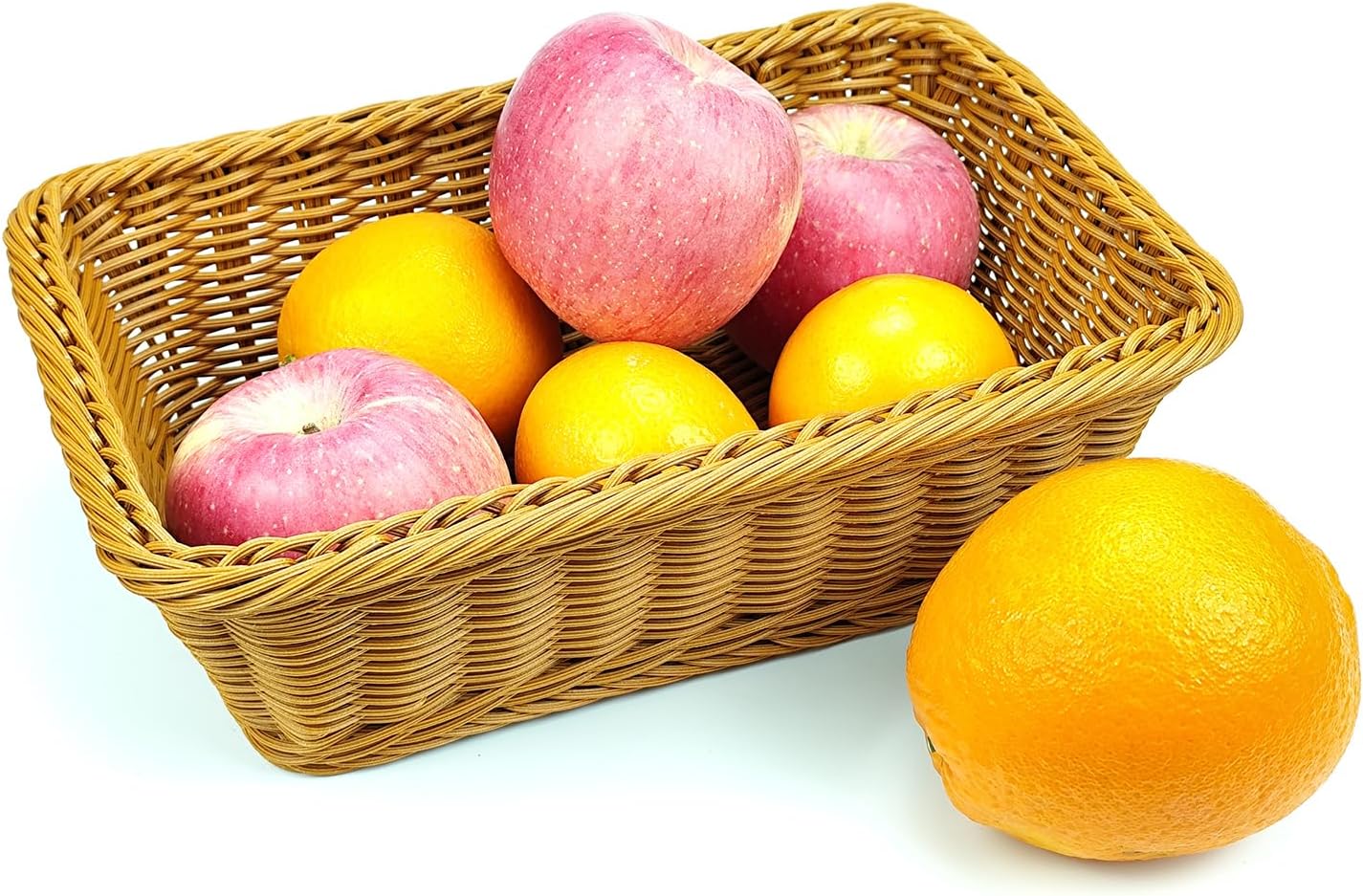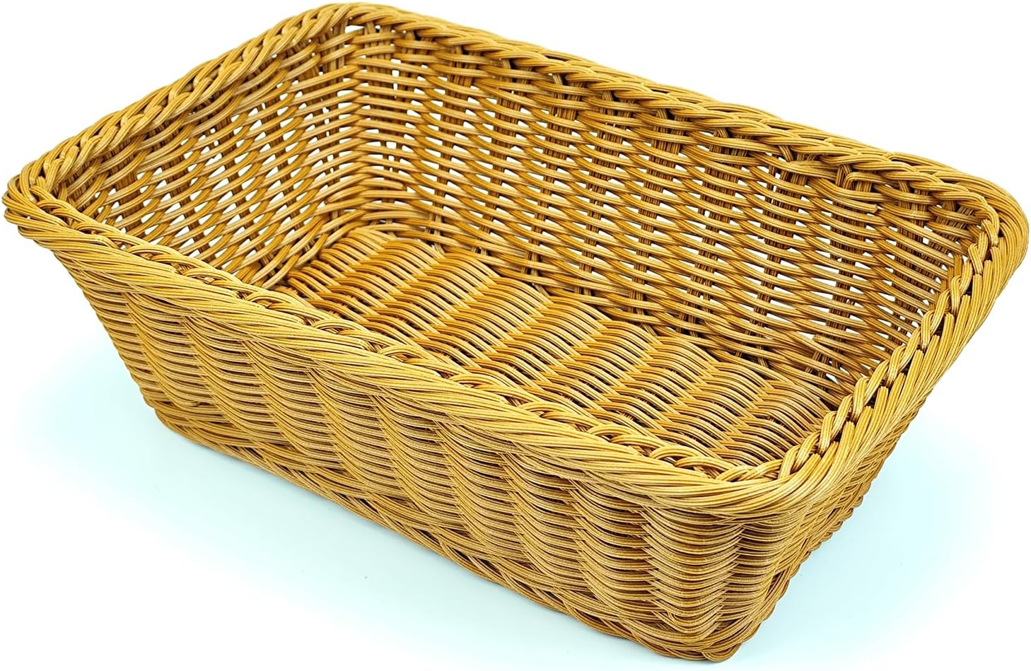 12" Poly Wicker Bread Basket, Hand Woven Food Storage Room Organizer, Fruits, Vegetables and Snacks Tabletop Food Serving Basket, Restaurant, Hotel Service, Brown