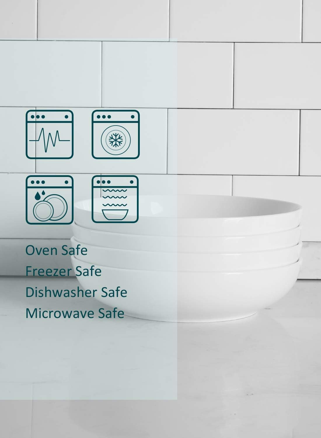 - MULTI-PURPOSE LARGE BOWLS - These big 35 oz pasta bowls measure 8.8x2.1” and can be used to prep big family dinners or as serving bowls for parties. The set includes 4 identical pasta bowls.