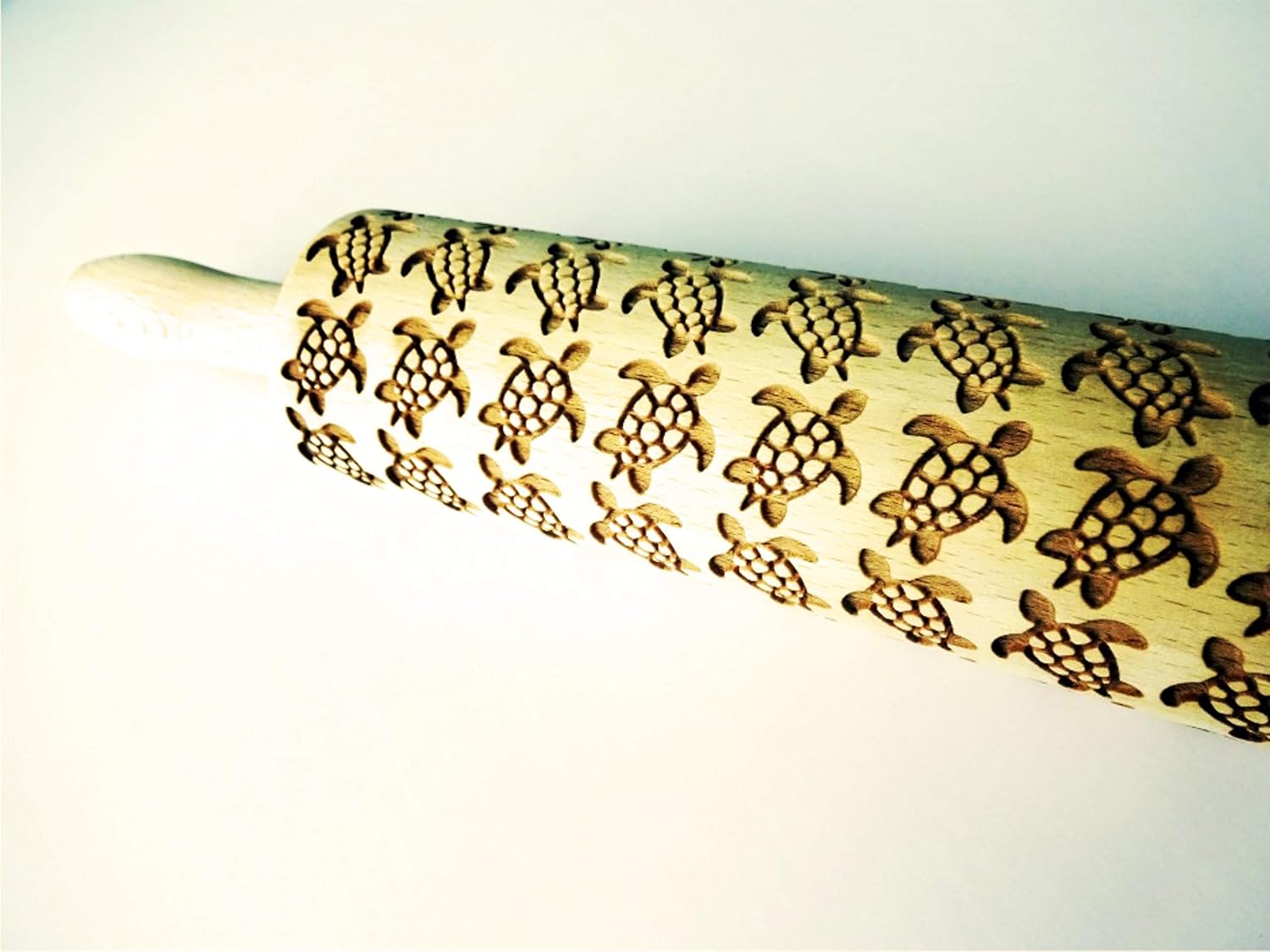 TURTLES EMBOSSING ROLLING PIN LASER ENGRAVED WOODEN DOUGH ROLLER with TURTLES COOKIES DECORATING ROLLER