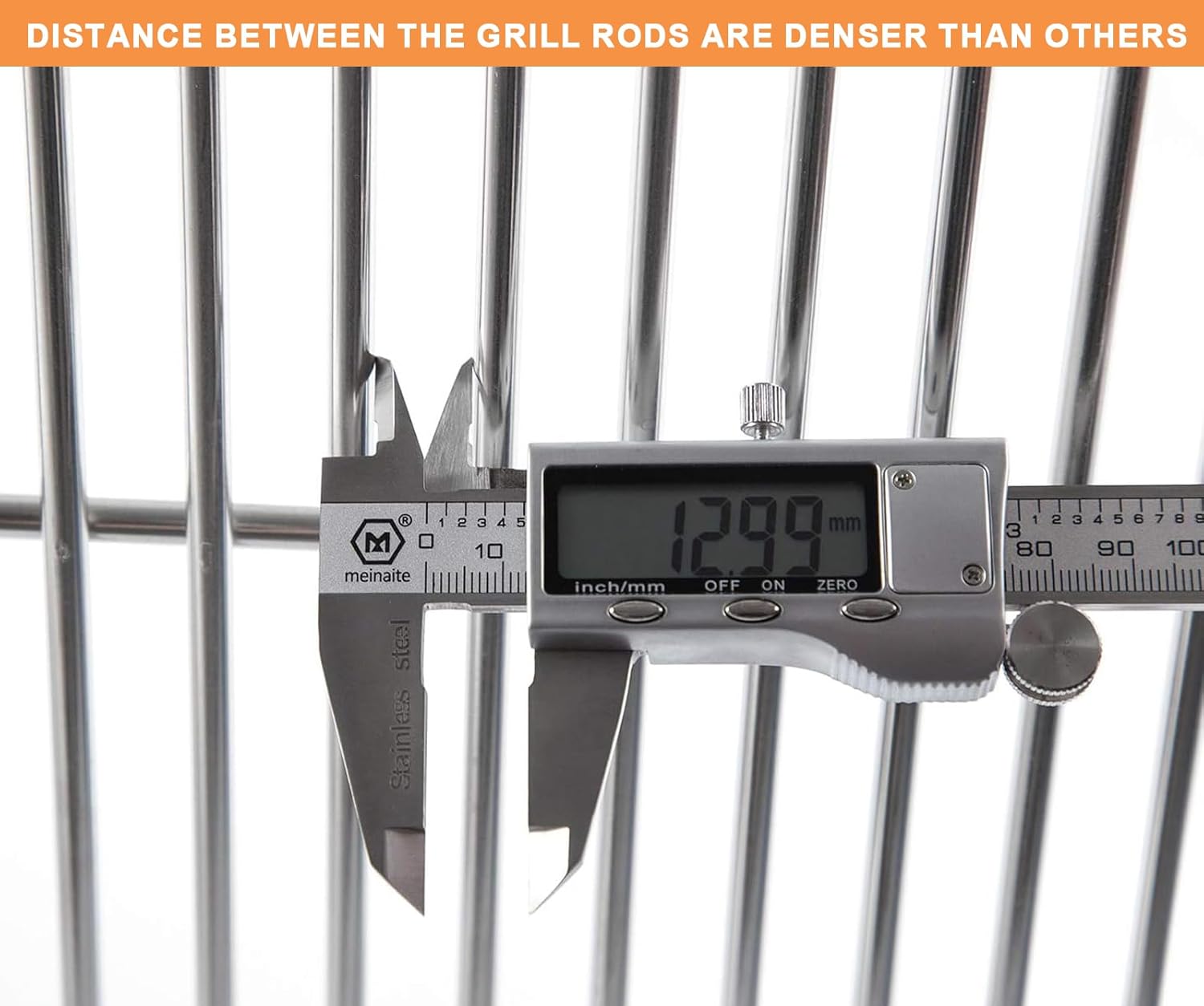 - Package includes 3-pack solid stainless steel grill grates. Material: Heavy-duty solid stainless steel : each rod diameter is 7mm( it is thicker and stronger than other traditional grill grates ). Dimensions: Each grate 19 1/4" x 10 3/8" ; total grates 19 1/4" x 31 1/8".