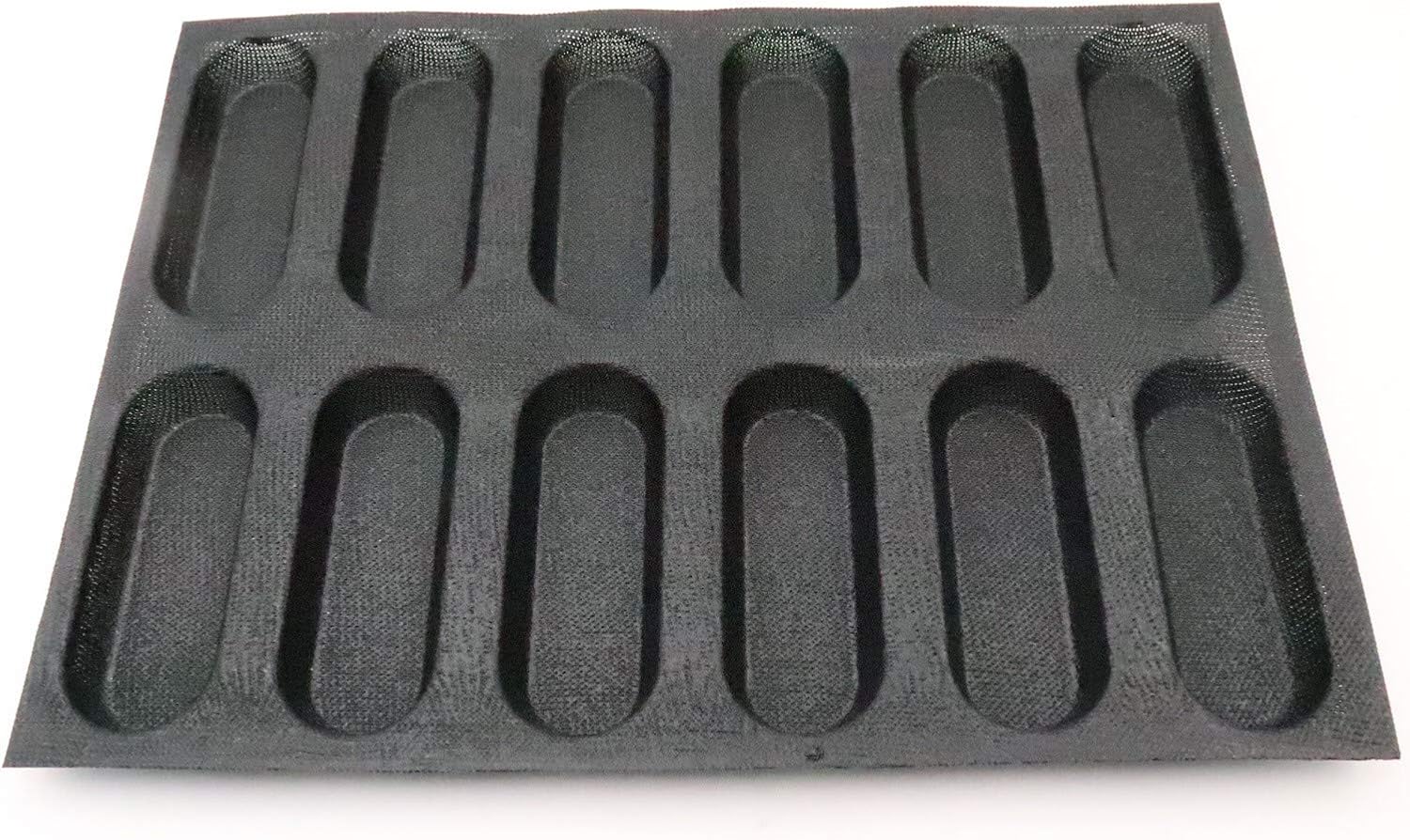 - Pack of 1 PCS Baby Hot Dog Eclair Baking Molds With PE Bag Each | Black Color | 12 Caves Each Cave Size 5"Lx1.8"Wx0.87"D(13x4.7x2.2CM) | Form Size 11.8"x15.75"(30x40CM)