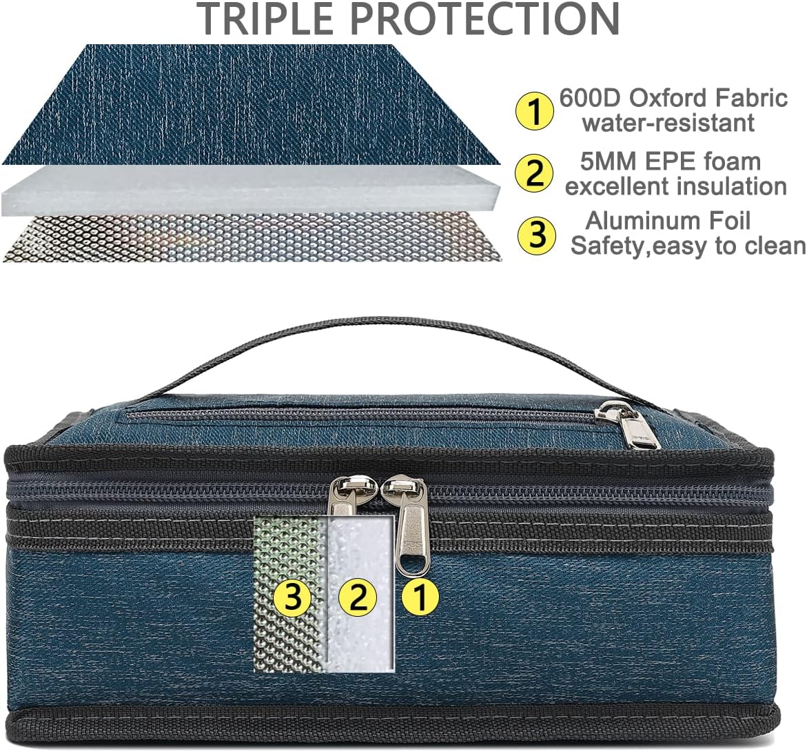 - ✿ Material:The FlowFly reusable Lunch Bag is made of the highly durable 600D Polyester,food grade aluminum foil inside, padded with extra thick 5mm PE foam and sturdy zippers.