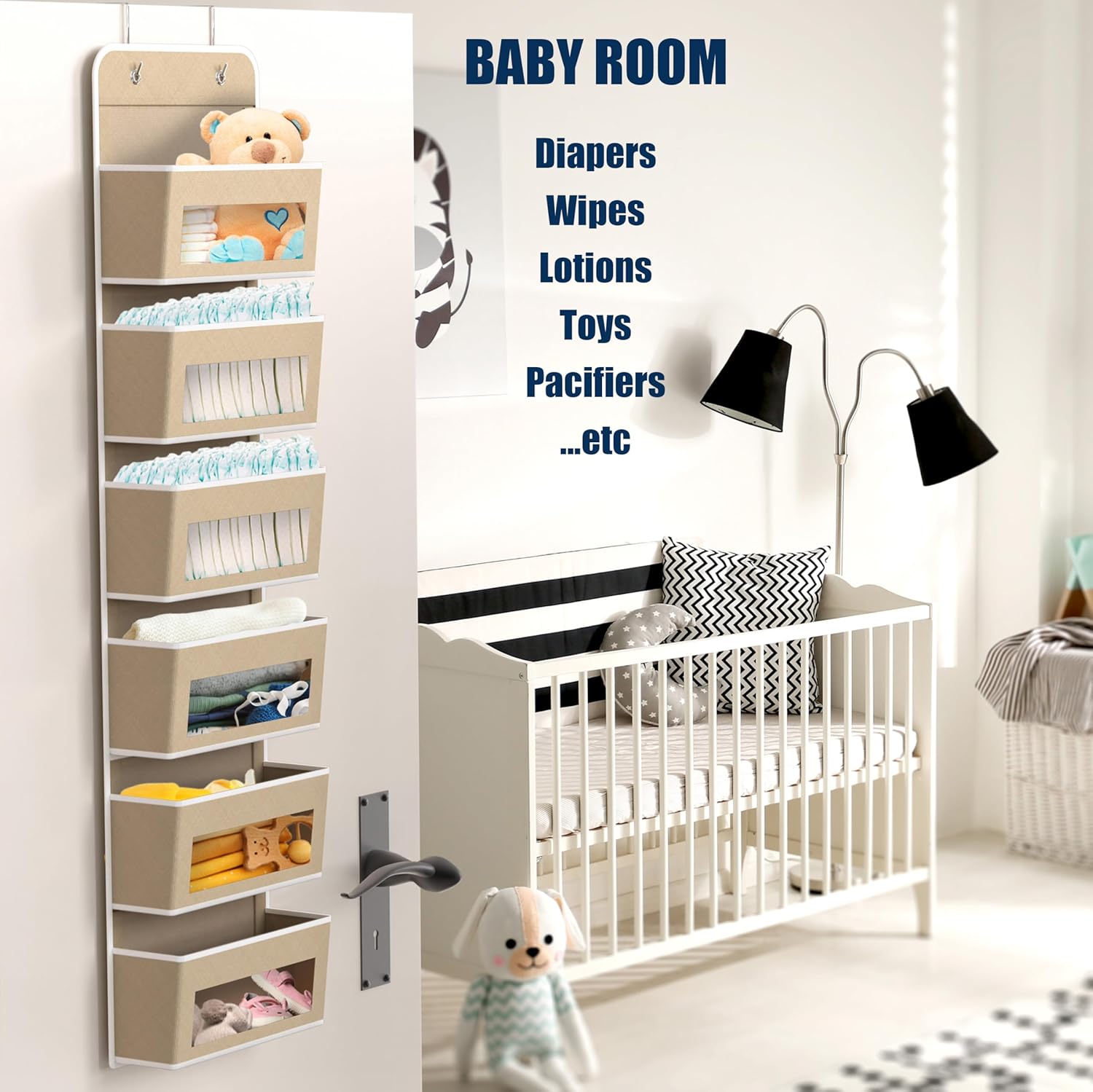 SIMPLE HOUSEWARE 6 Clear Window Pocket Over Closet Door Storage Hanging Organizer for Bedroom, Bathroom, Pantry, Beige