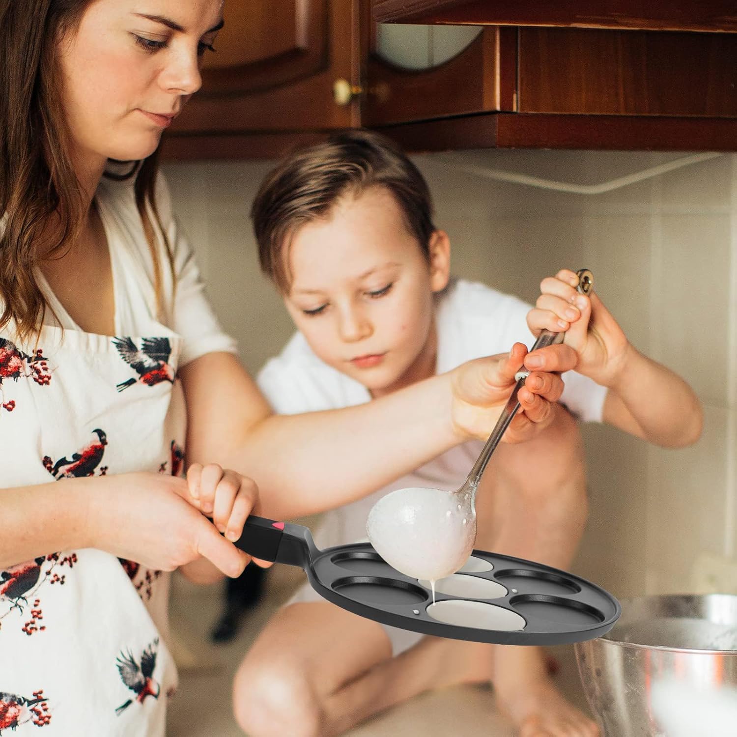 - Heats Quickly & Evenly β Made of sturdiness die cast aluminum, durability and light weight. 3 - layer thickened pot bottom evenly heated ensures maximum heat transfer for fast, not leave dark spots on your mini pancakes / omelets.