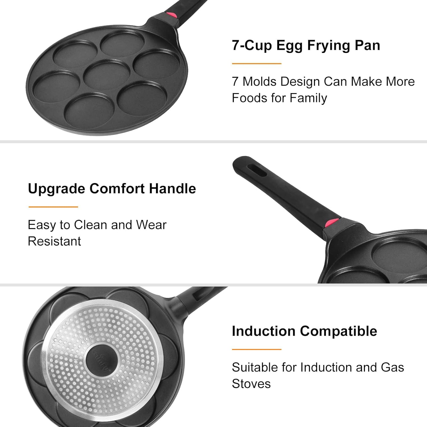 Pancake Pan Maker Nonstick Induction Compatible, 10.5 Inch Mini Non Stick Silver Dollar Grill Blini Griddle Crepe Pan,7 Molds Cake Egg Cooker Skillet for Kids Gifts