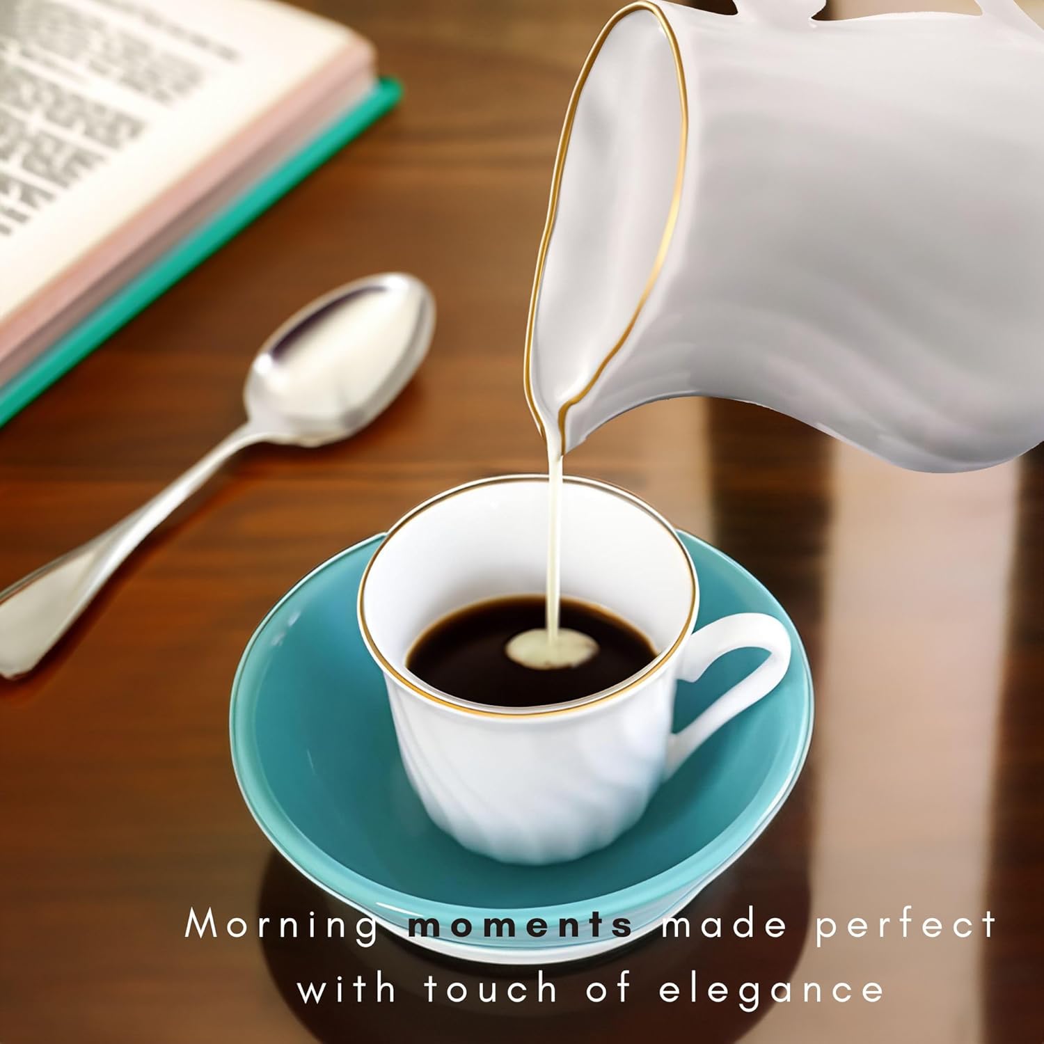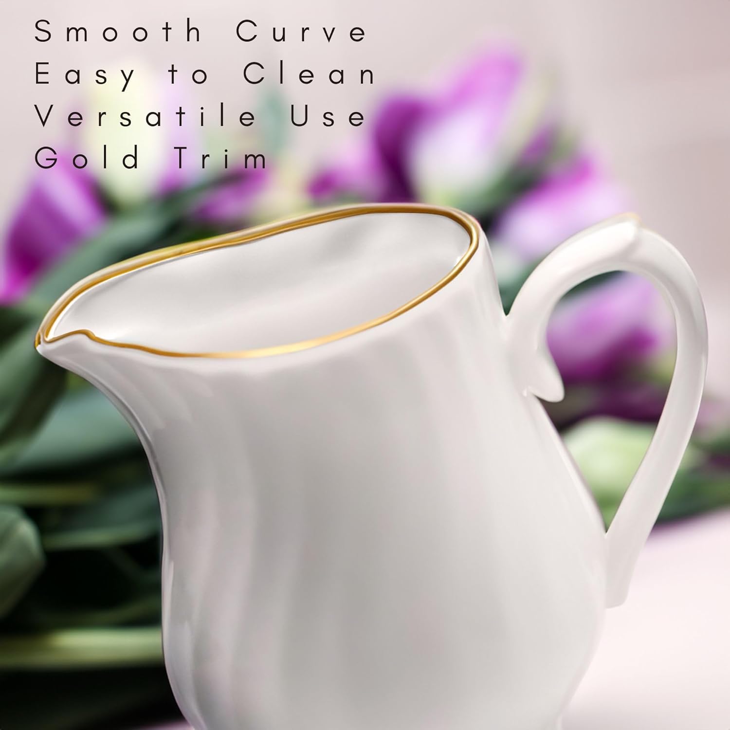 Sugar and Creamer Set - Porcelain Sugar and Creamer Vintage Tea Set with Gold Trims & Embossed Swirls - Exquisite Fine China Tea Set for Parties & Celebrations - Imperial Gold Set by Lynns