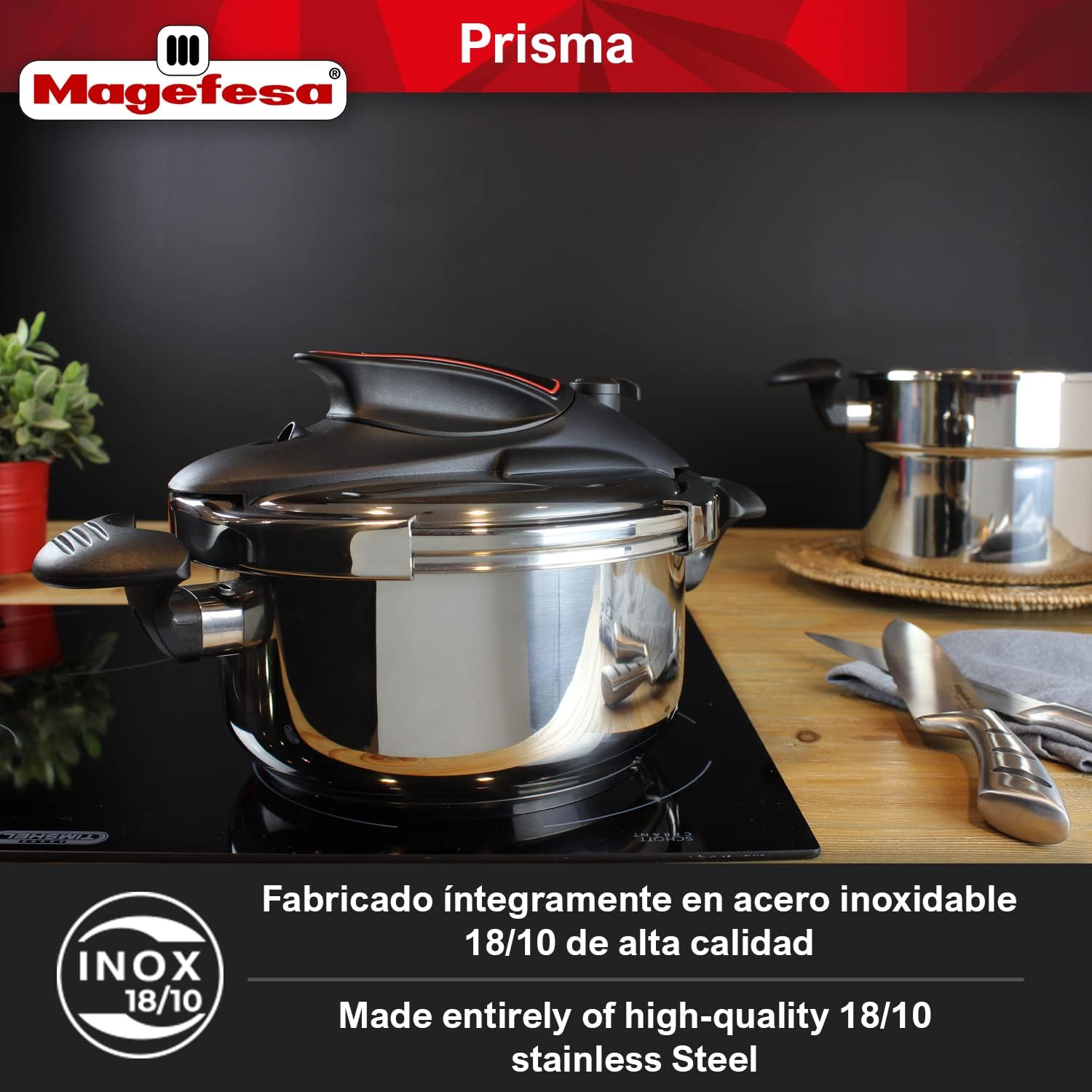 MAGEFESA Prisma Pressure Cooker, 4.2+6.3 Qt, 18/10 Stainless Steel, Easy Lock, Induction Compatible, 5 Safety Systems, 11.6 PSI