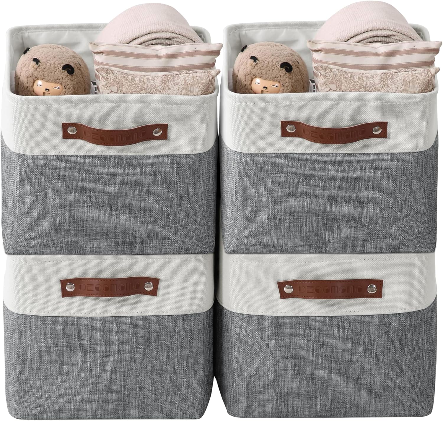 - Large Storage Basket: Set of 4 for better value and shopping convenience. Each storage basket measures: 15β (L) x 11β (W) x 9.5β (H) / (38cm x 28 cm x 24 cm). DECOMOMO's decorative storage boxes can be used in bedroom, living room, kitchen, office, closets, and cabinets.